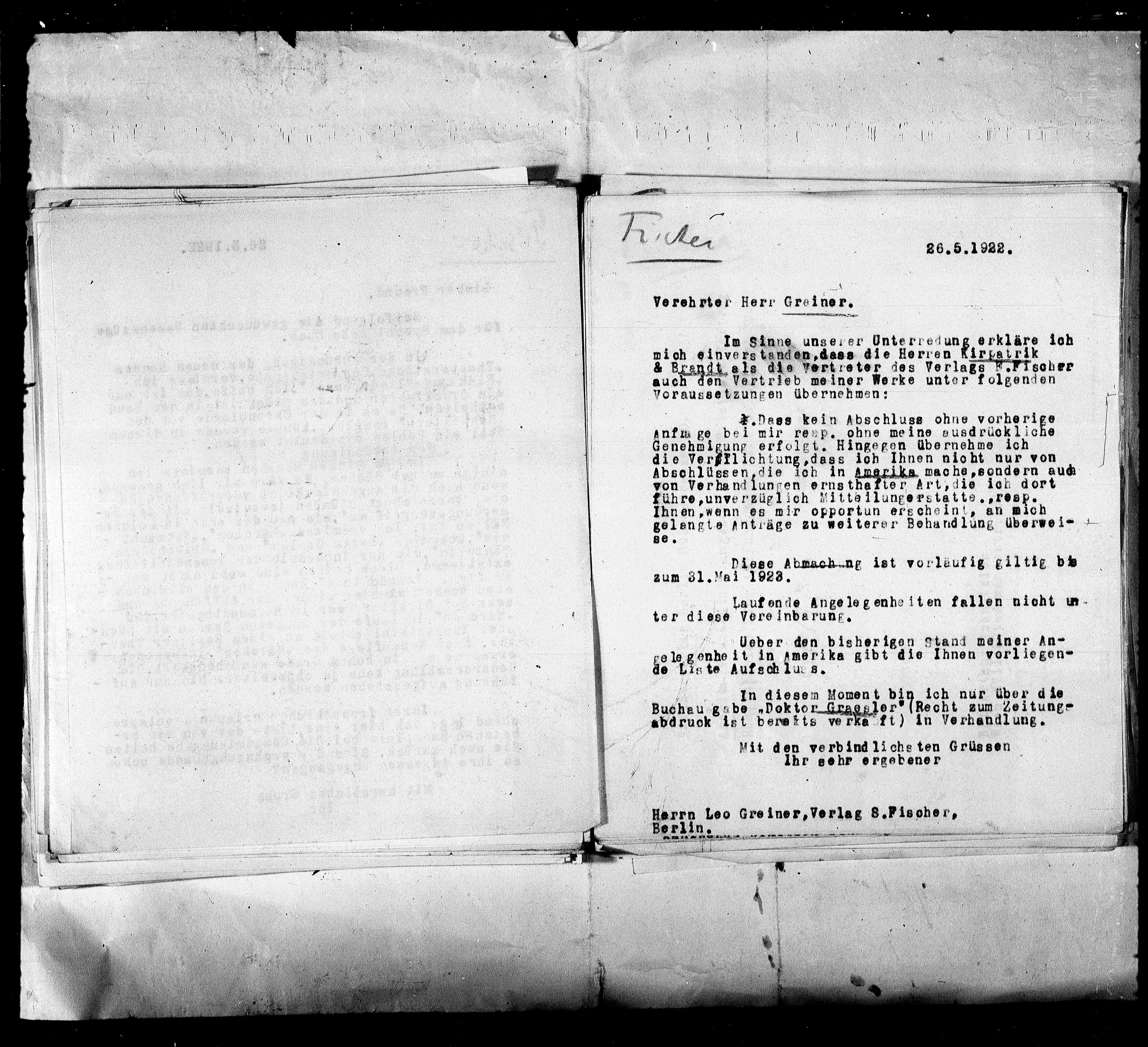 Herrn Leo Greiner, Verlag S.Fischer,