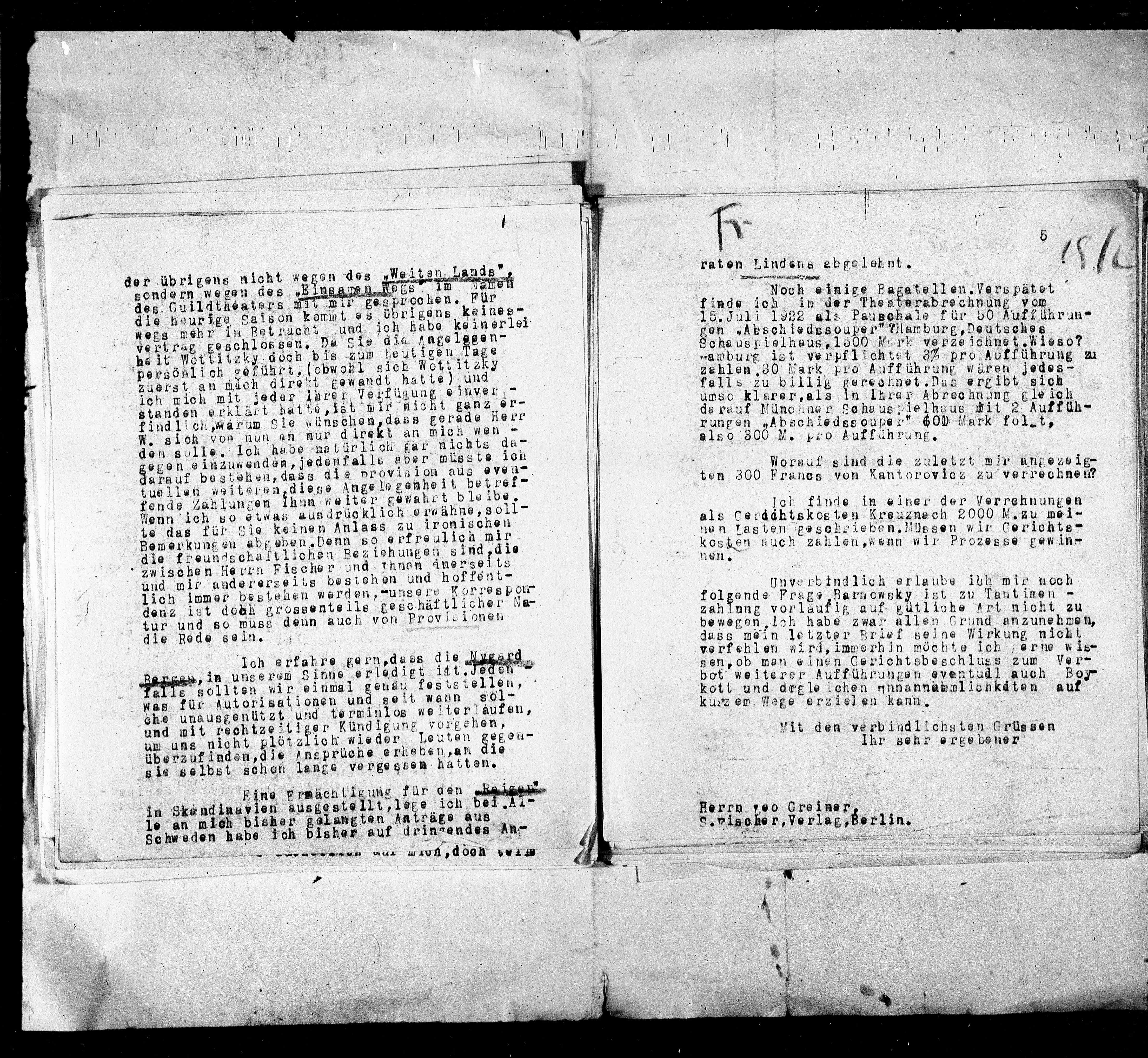 15. Juli 1922 als Pauschale für 50 Aufführung