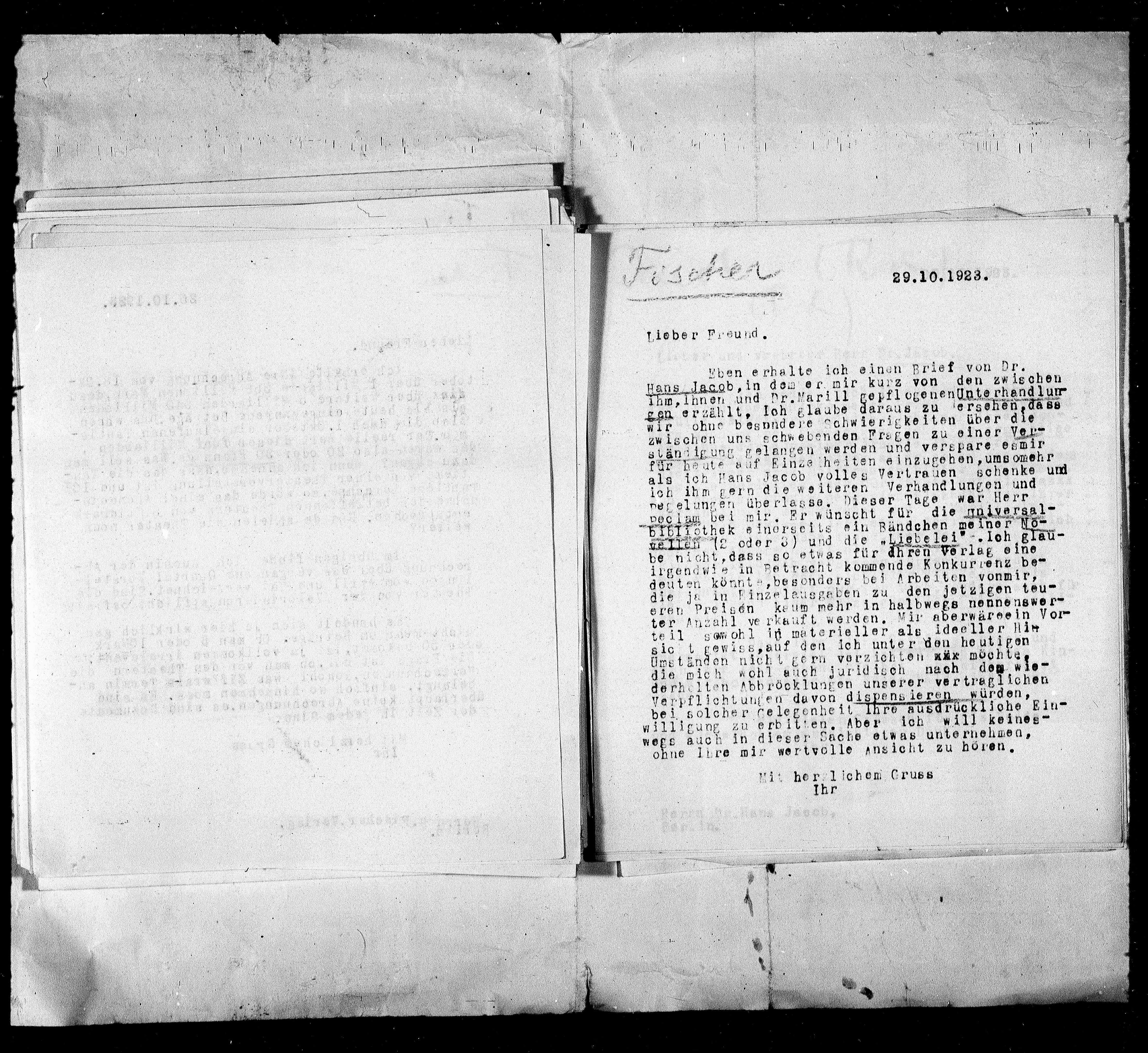 ihm, Ihnen und Pr.Marill gepflogenen Unterhandlung