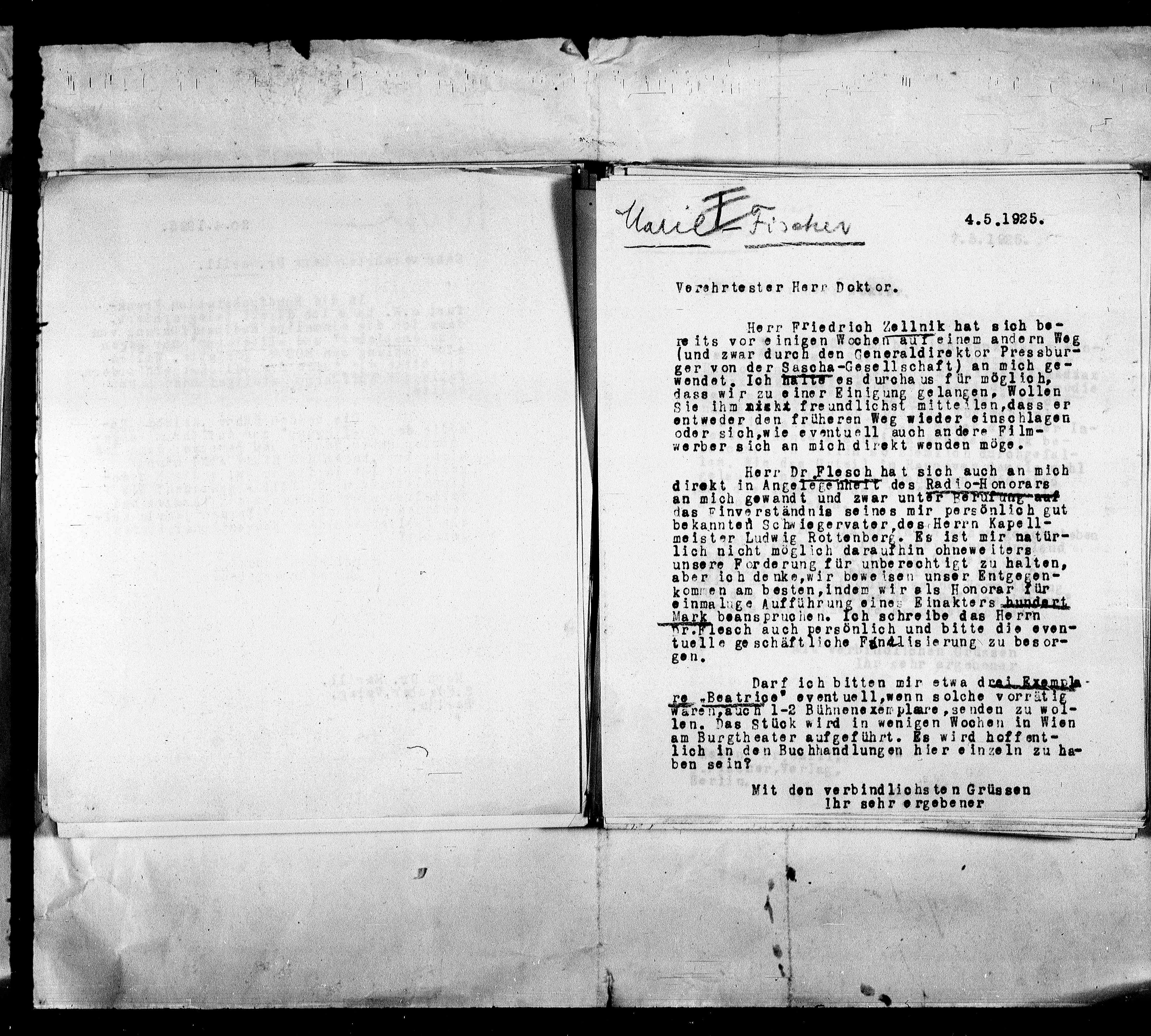 Herr Dr Flesch hat sich auch an mich