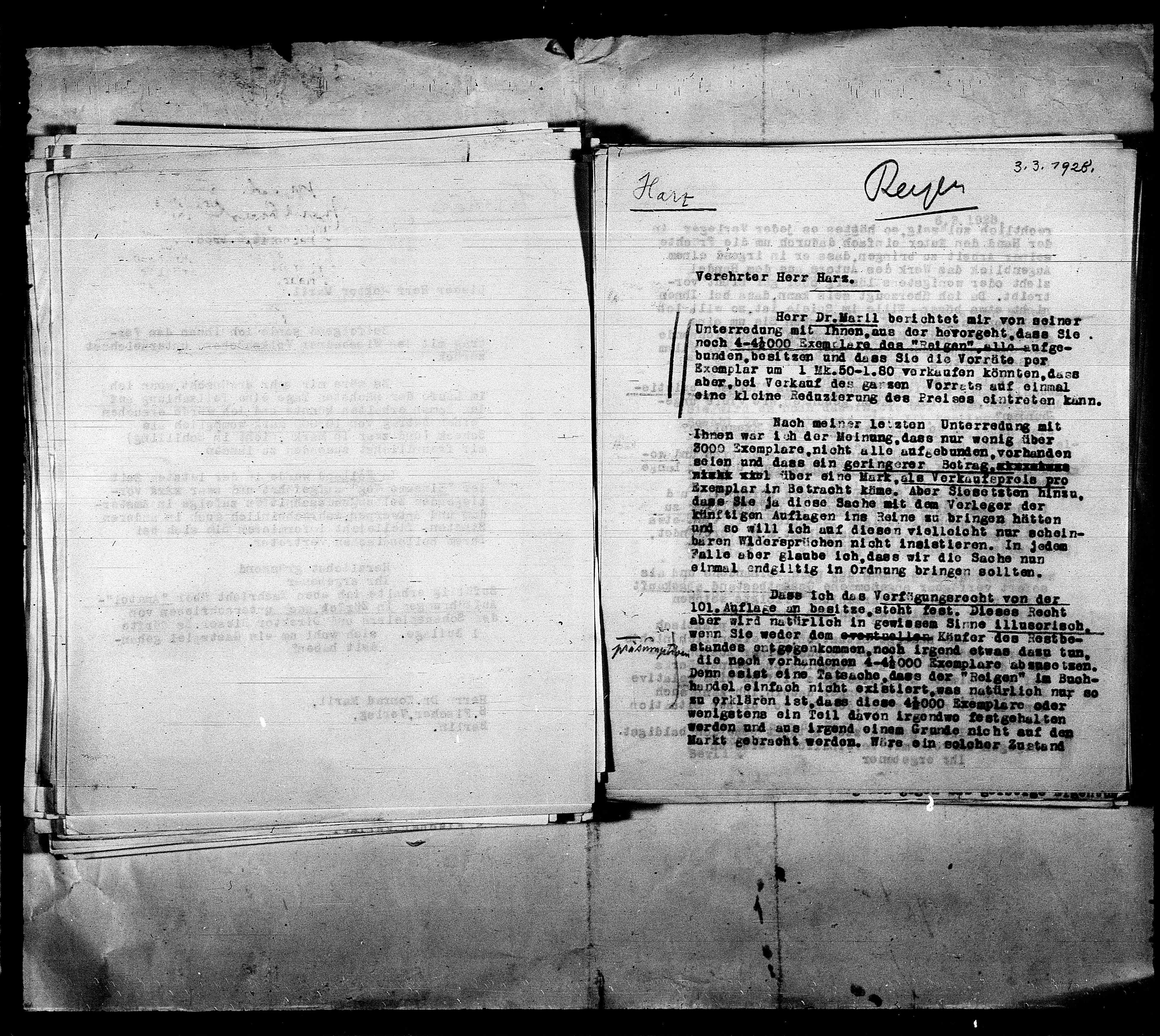 noch 4-44000 Exemplare des "Reigen" alle aufge-