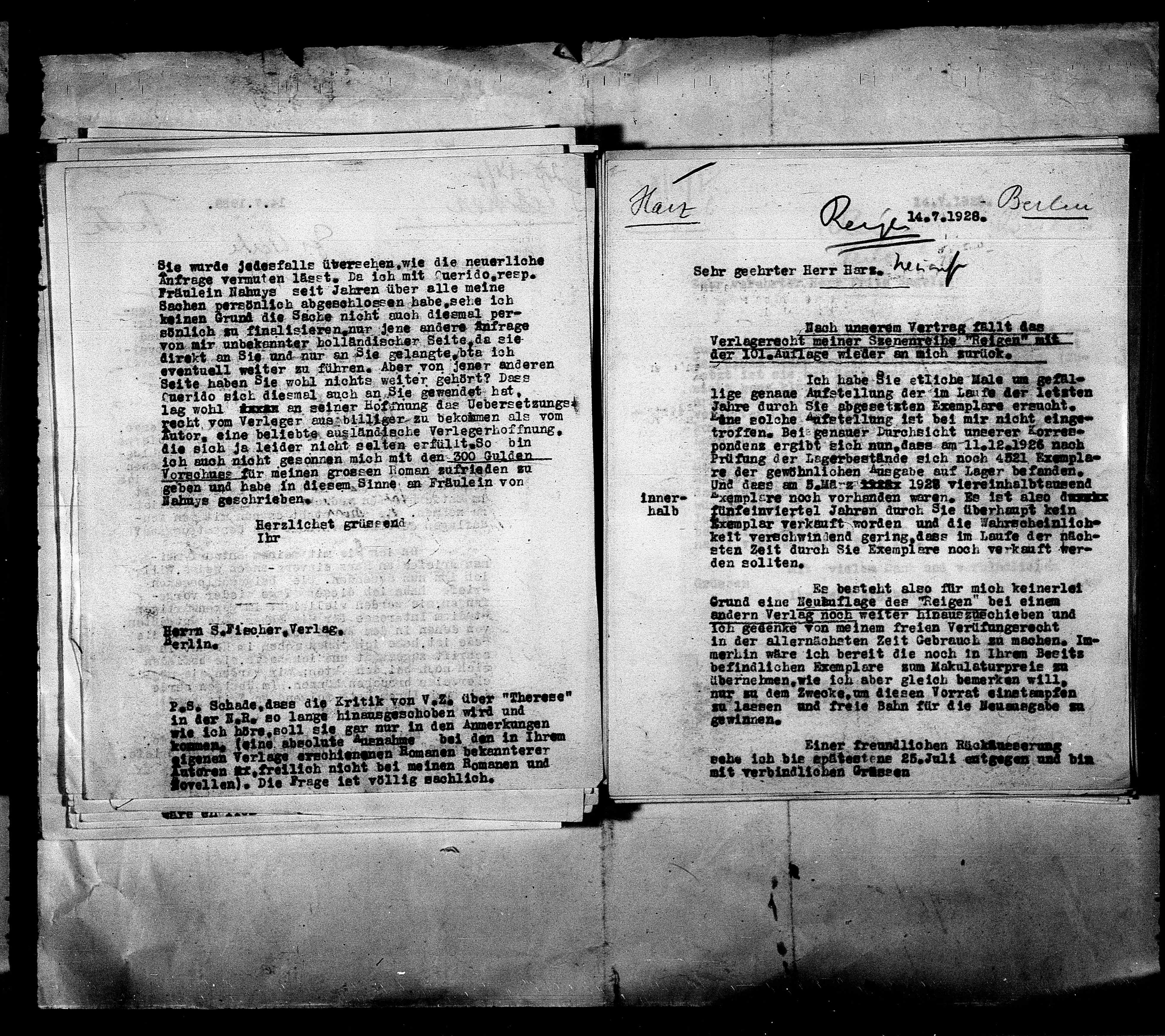 Herrn S.Fischer,Verlag.