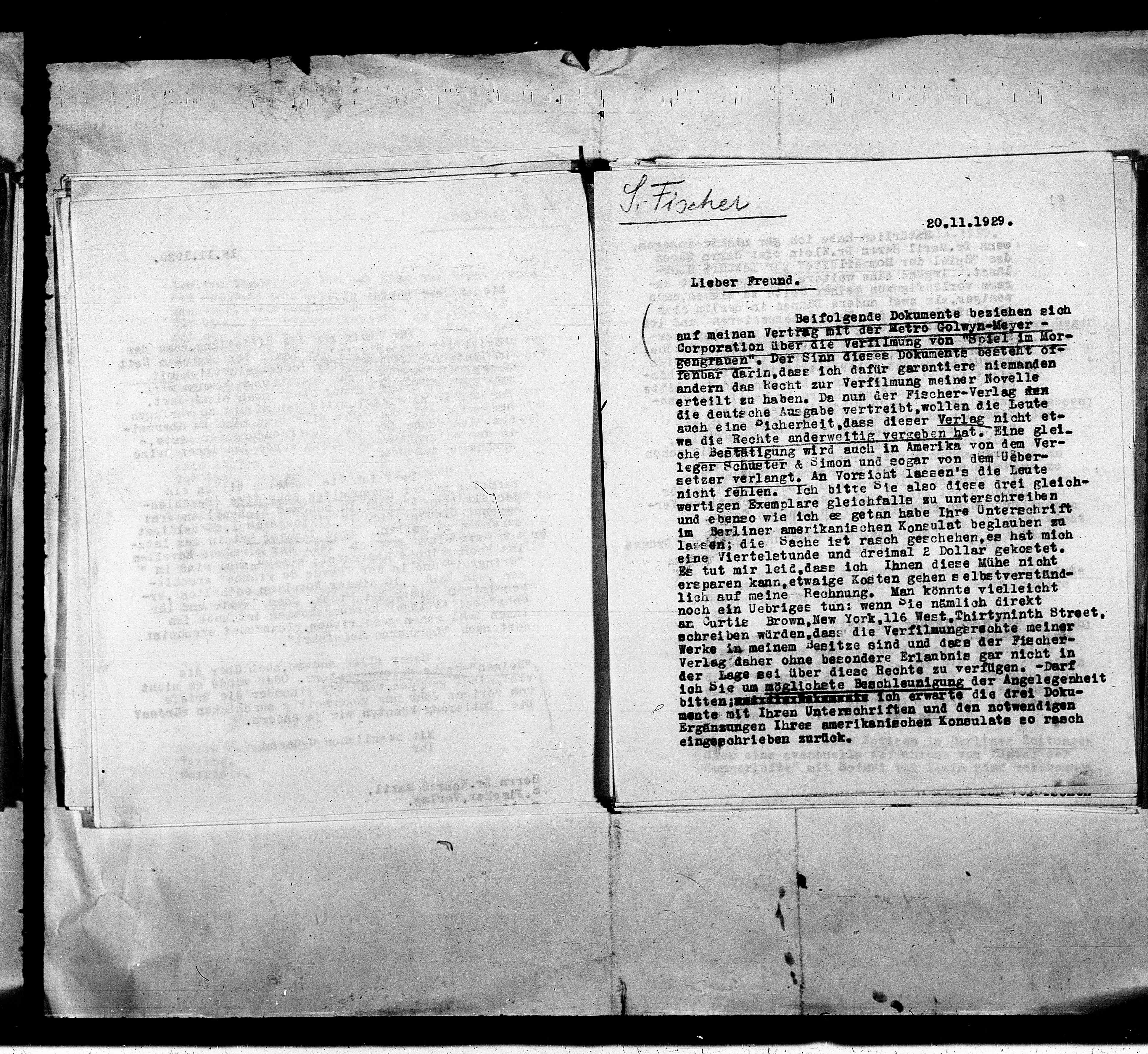 andern das Recht zur Verfilmung meiner Novelle
