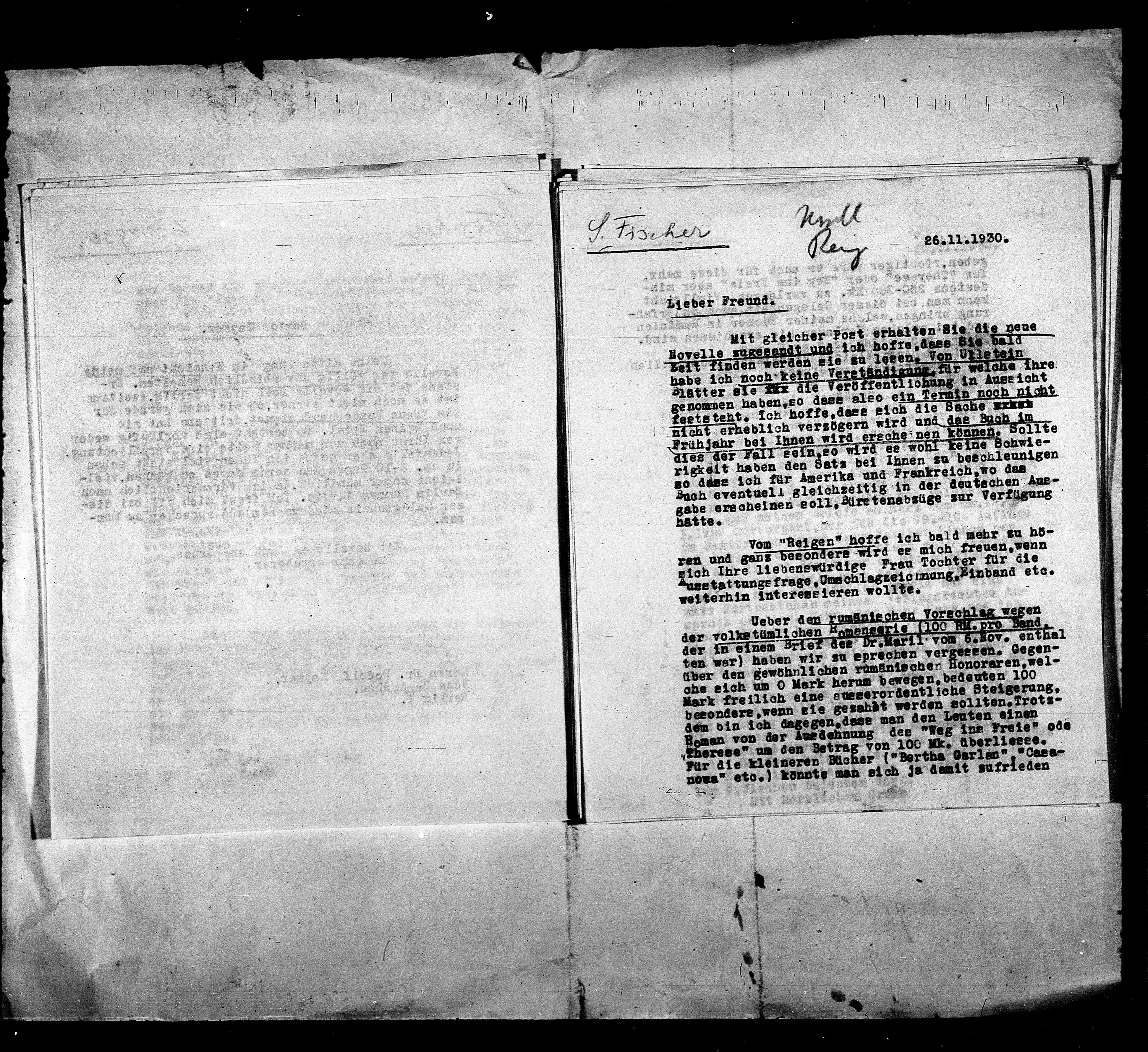 Novelle zugesandt und ich hofre, dass Sie bald