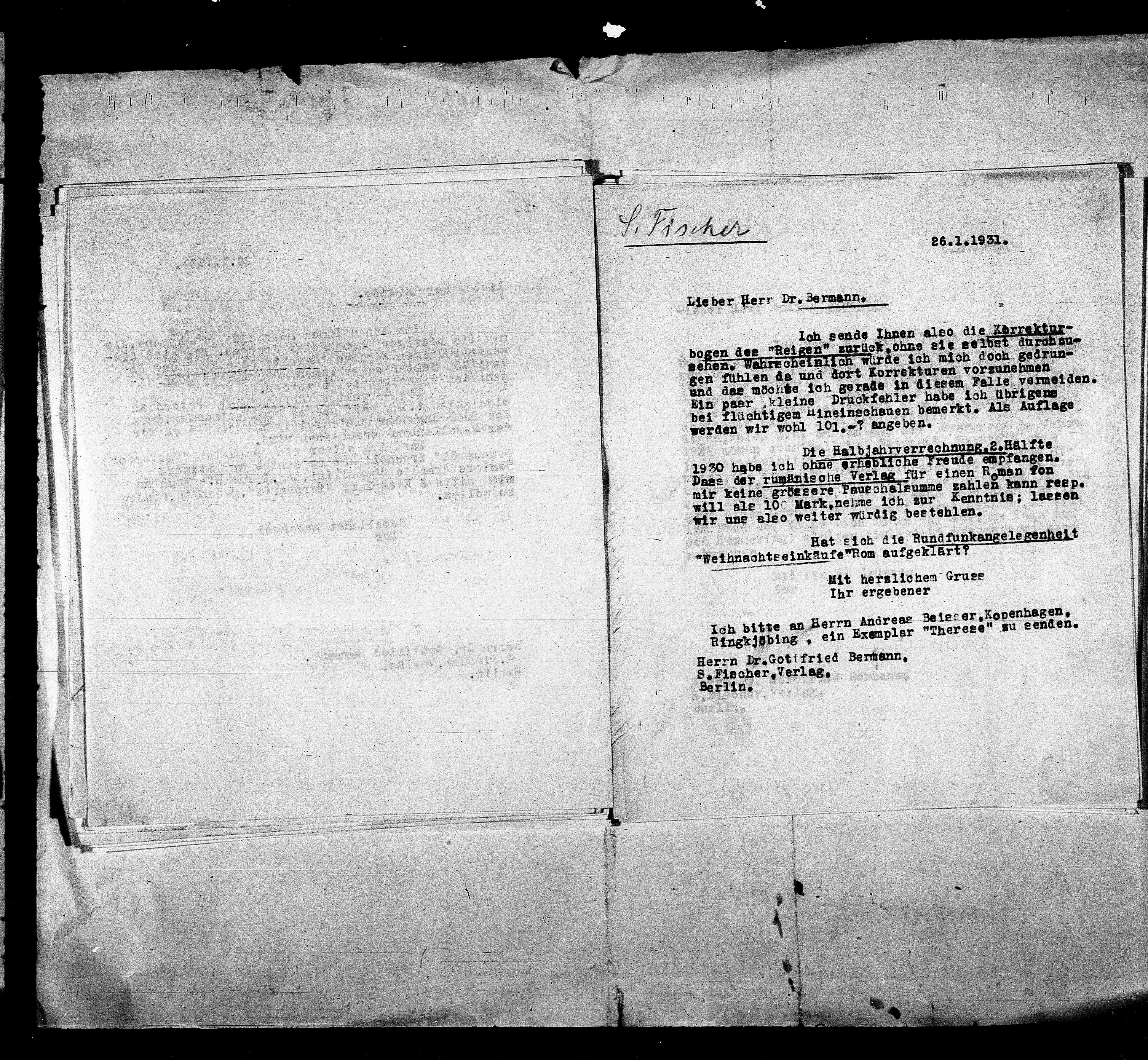 Ich bitte an Herrn Andreas Beisser,Kopenhagen,