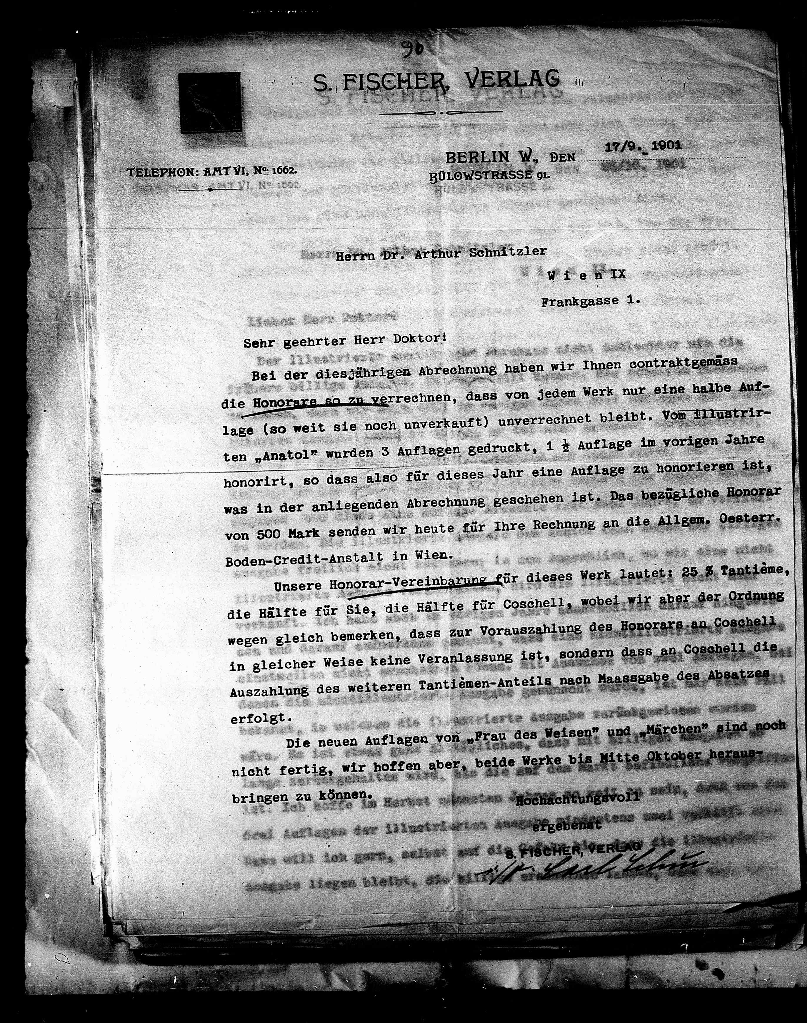 ten „Anatol“ wurden 3 Auflagen gedruckt, 1 ½ Auflage im vorigen Jahre