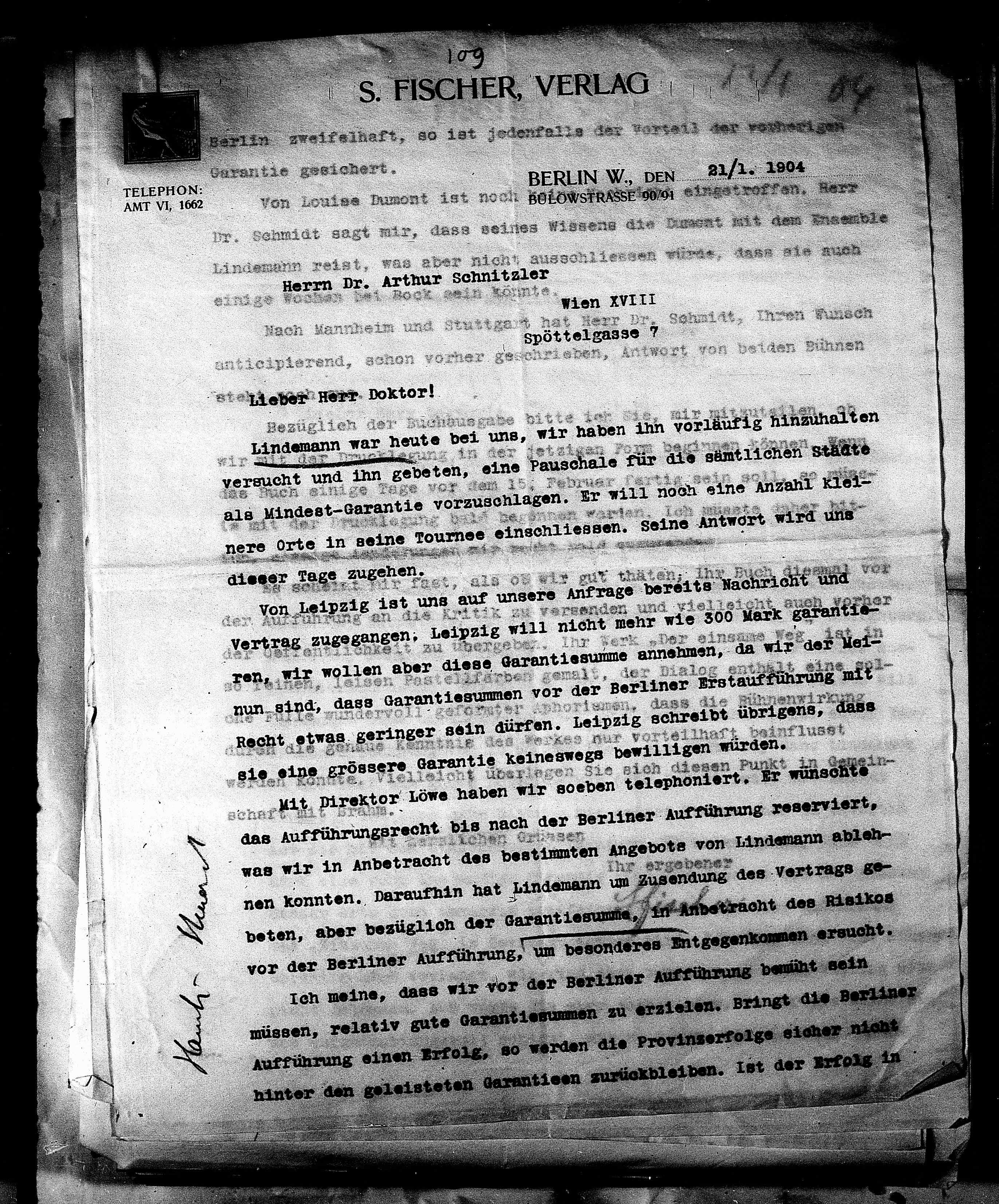 nen konnten. Daraufhin hat Lindemann um Zusendung des Vertrags ge-