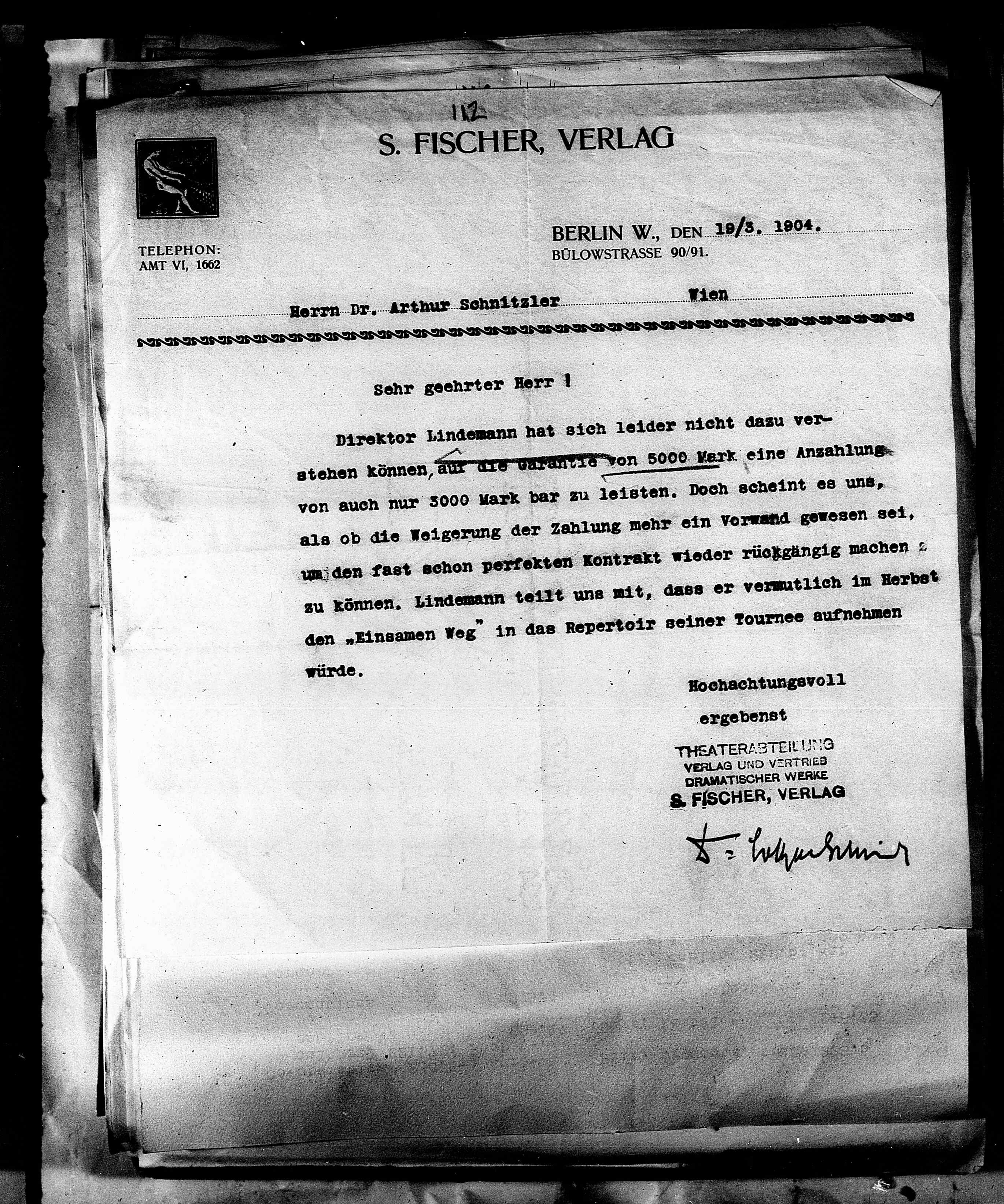 stehen können, auf die Garantie von 5000 Mark eine Anzahlung