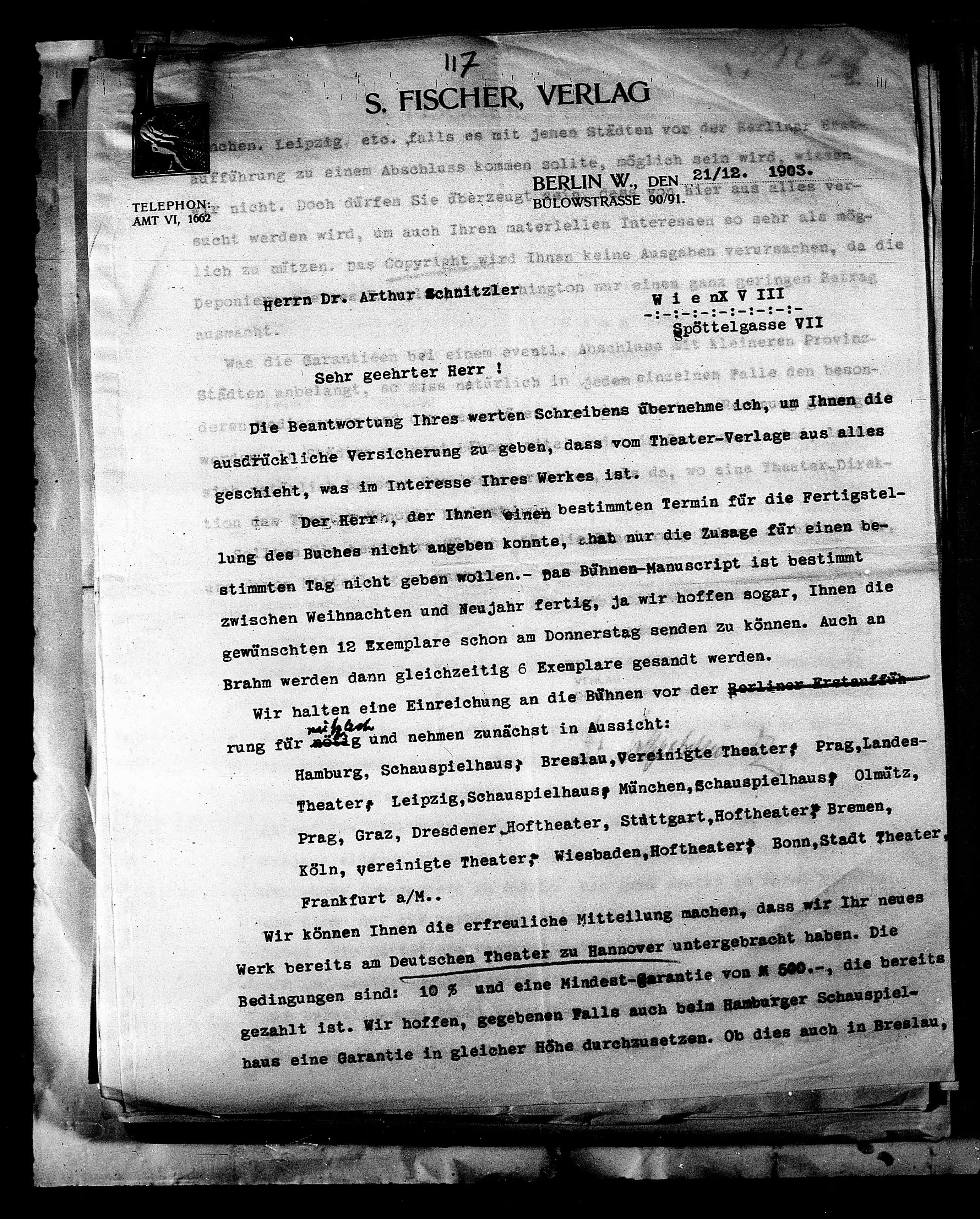 ausdrückliche Versicherung zu geben, dass vom Theater-Verlage aus alles