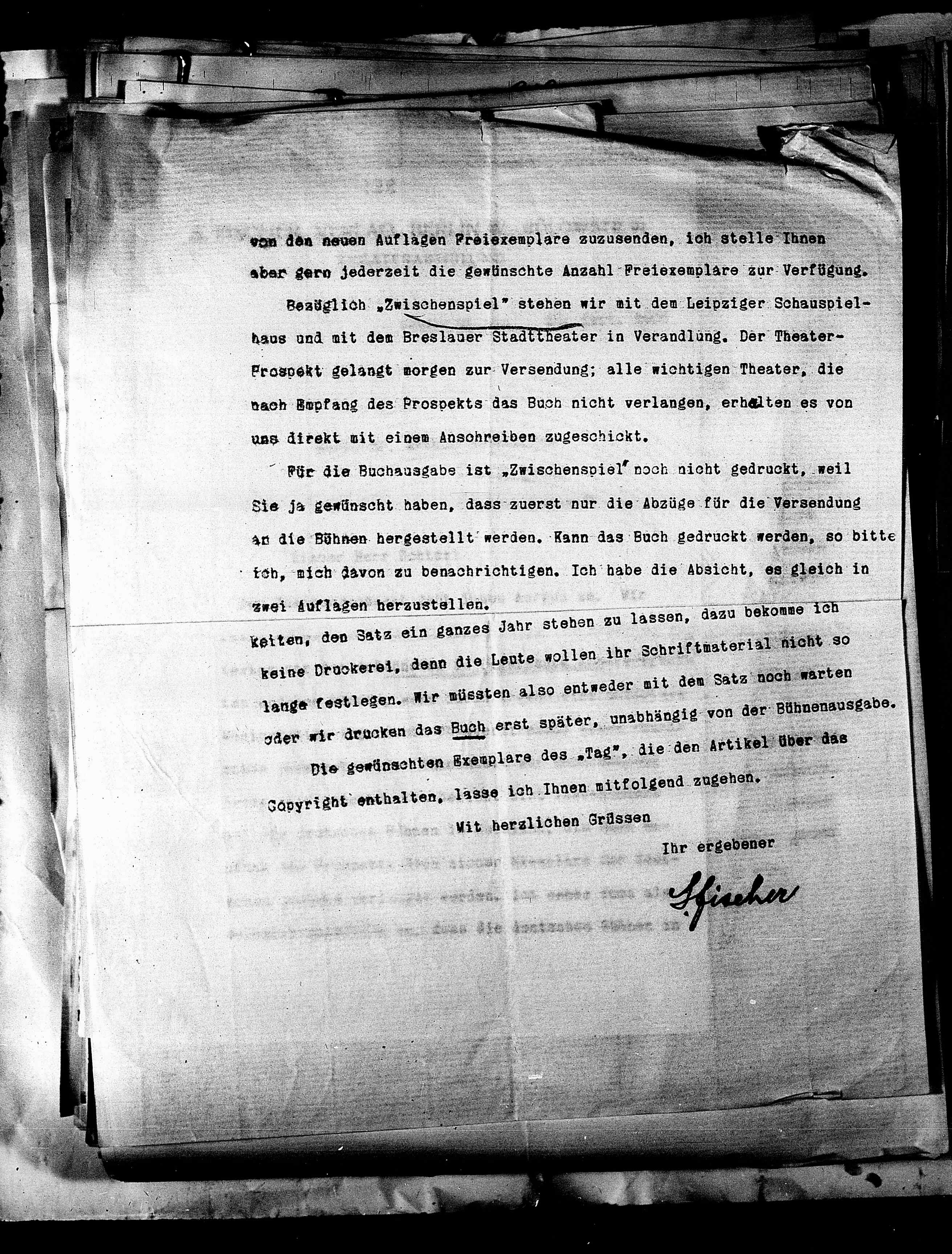 Für die Buchausgabe ist „Zwischenspiel“ noch nicht gedruckt, weil