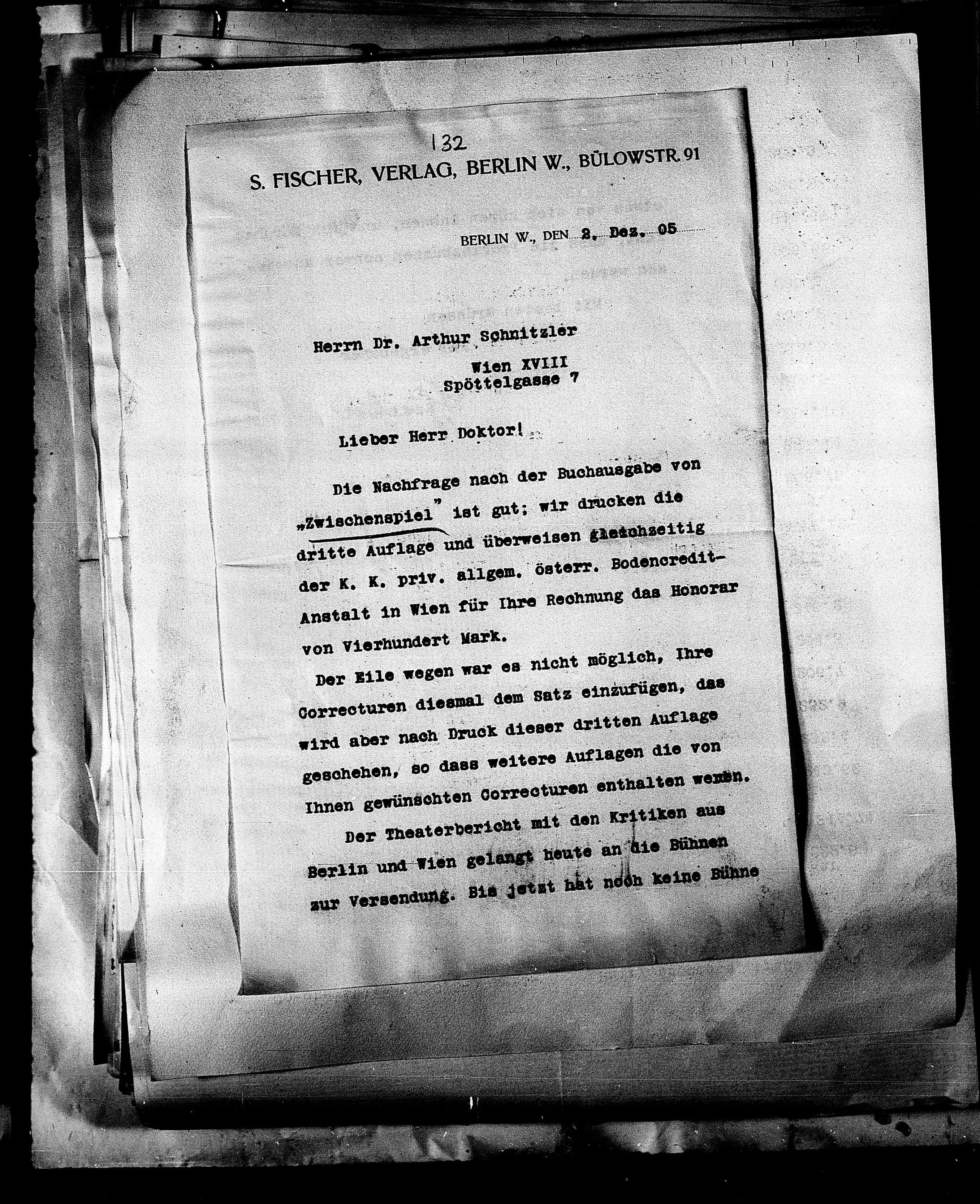 S. FISCHER,VERLAG, BERLIN W., BÜLowSTR. 91
