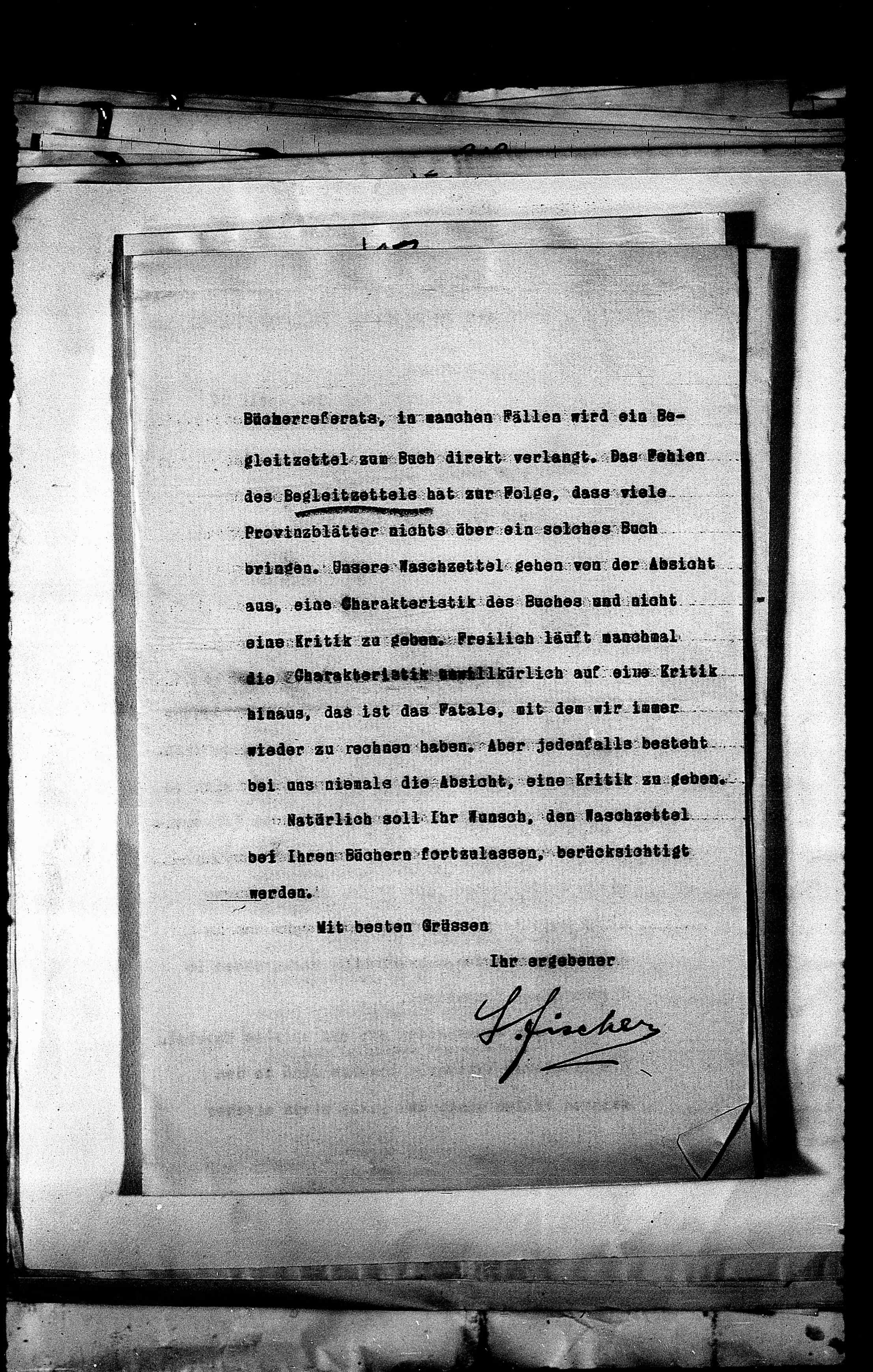 gleitzettel zum Buch direkt verlangt. Das Fehlen