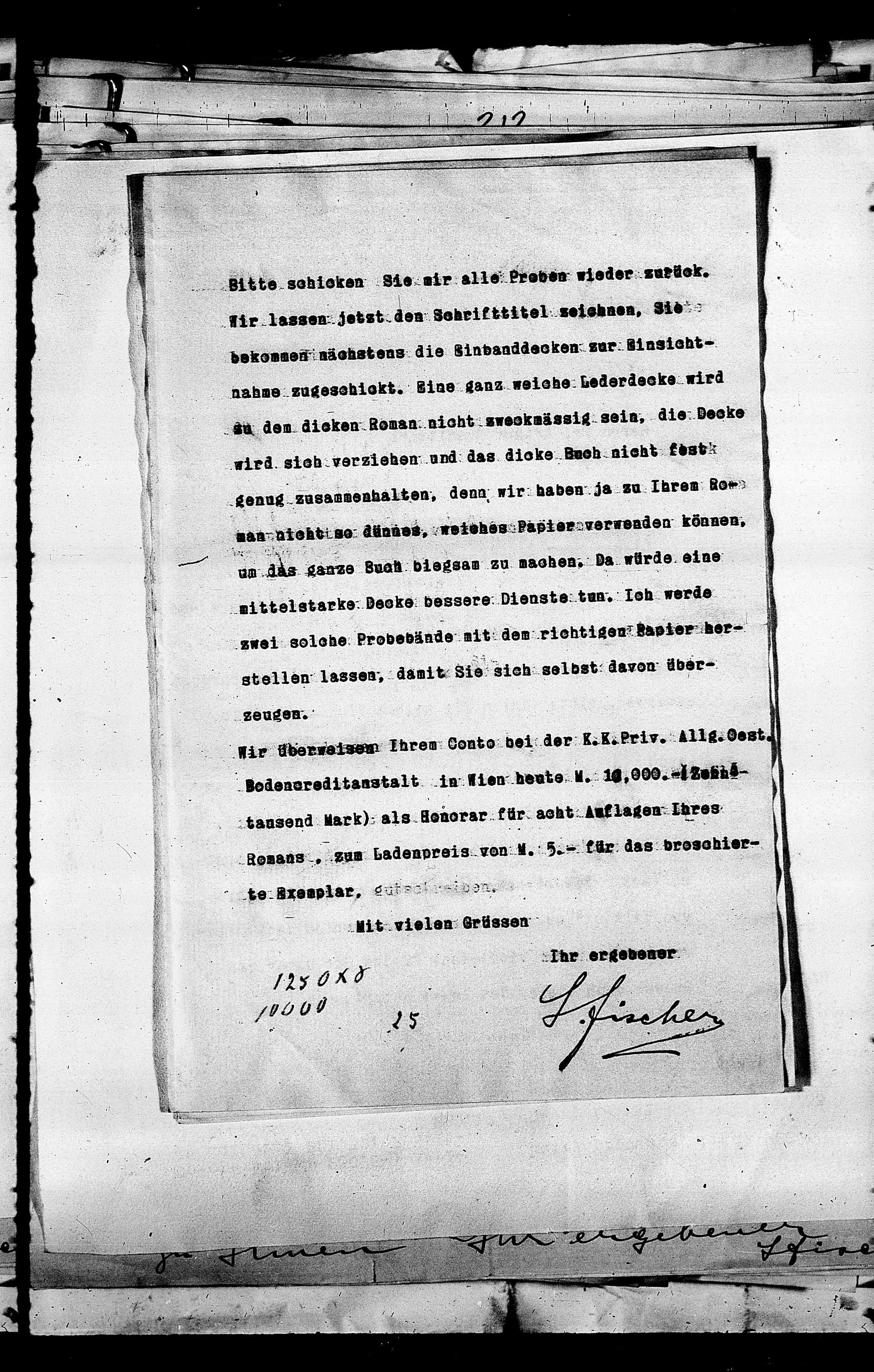 tausend Mark); als Honorar für acht Auflagen Ihres