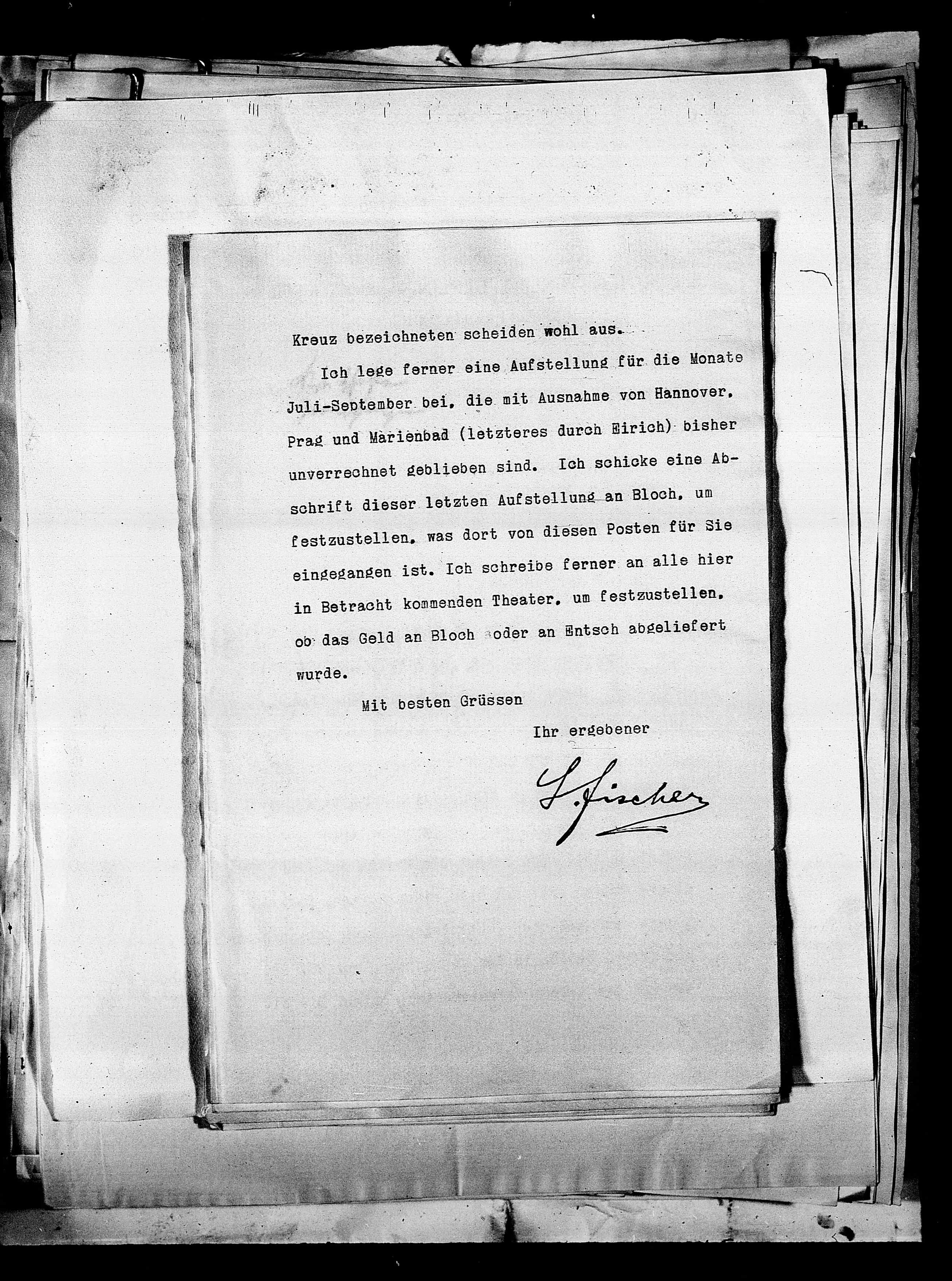 schrift dieser letzten Aufstellung an Bloch, um