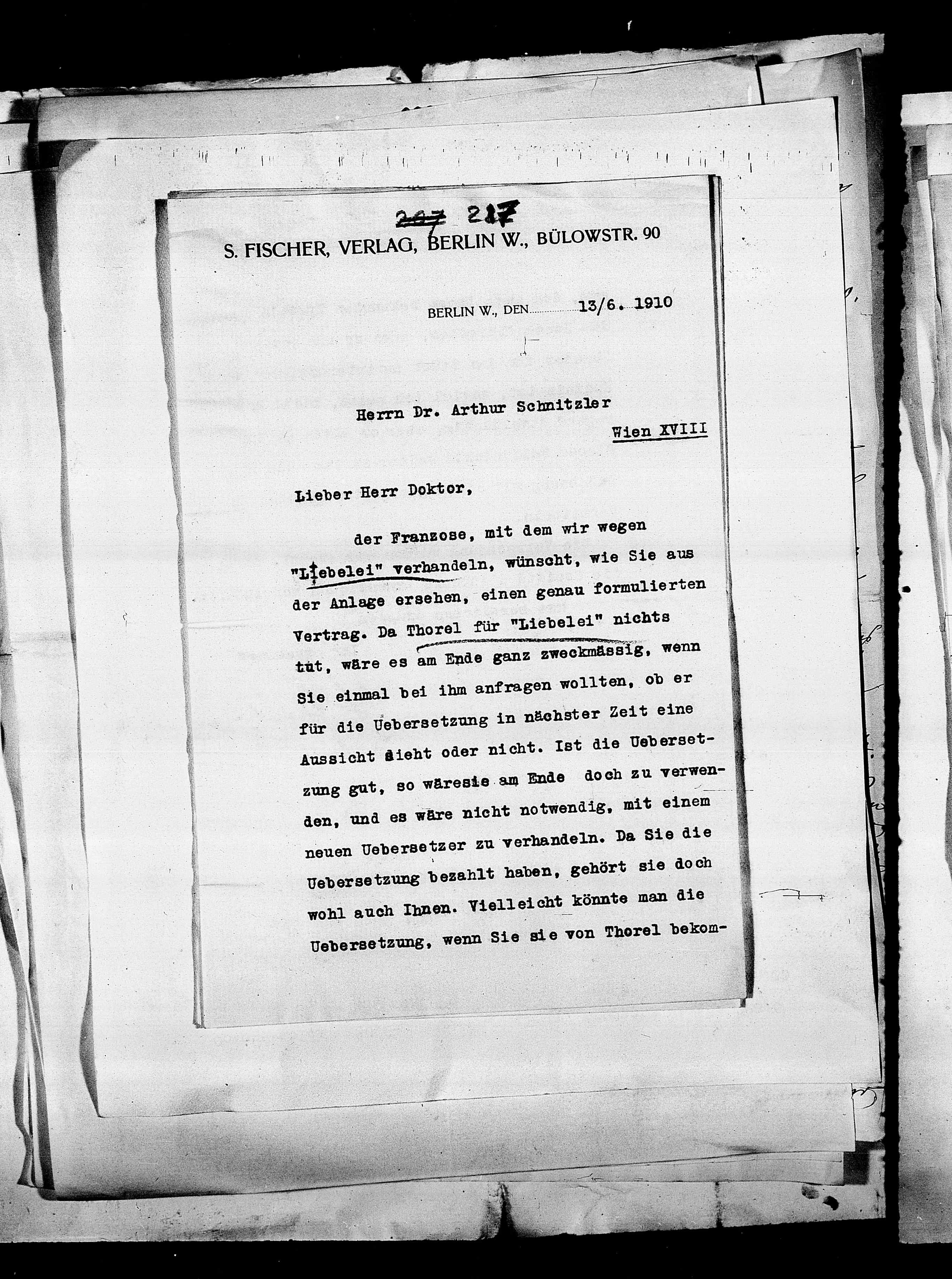 Vertrag. Da Thorel für "Liebelei" nichts