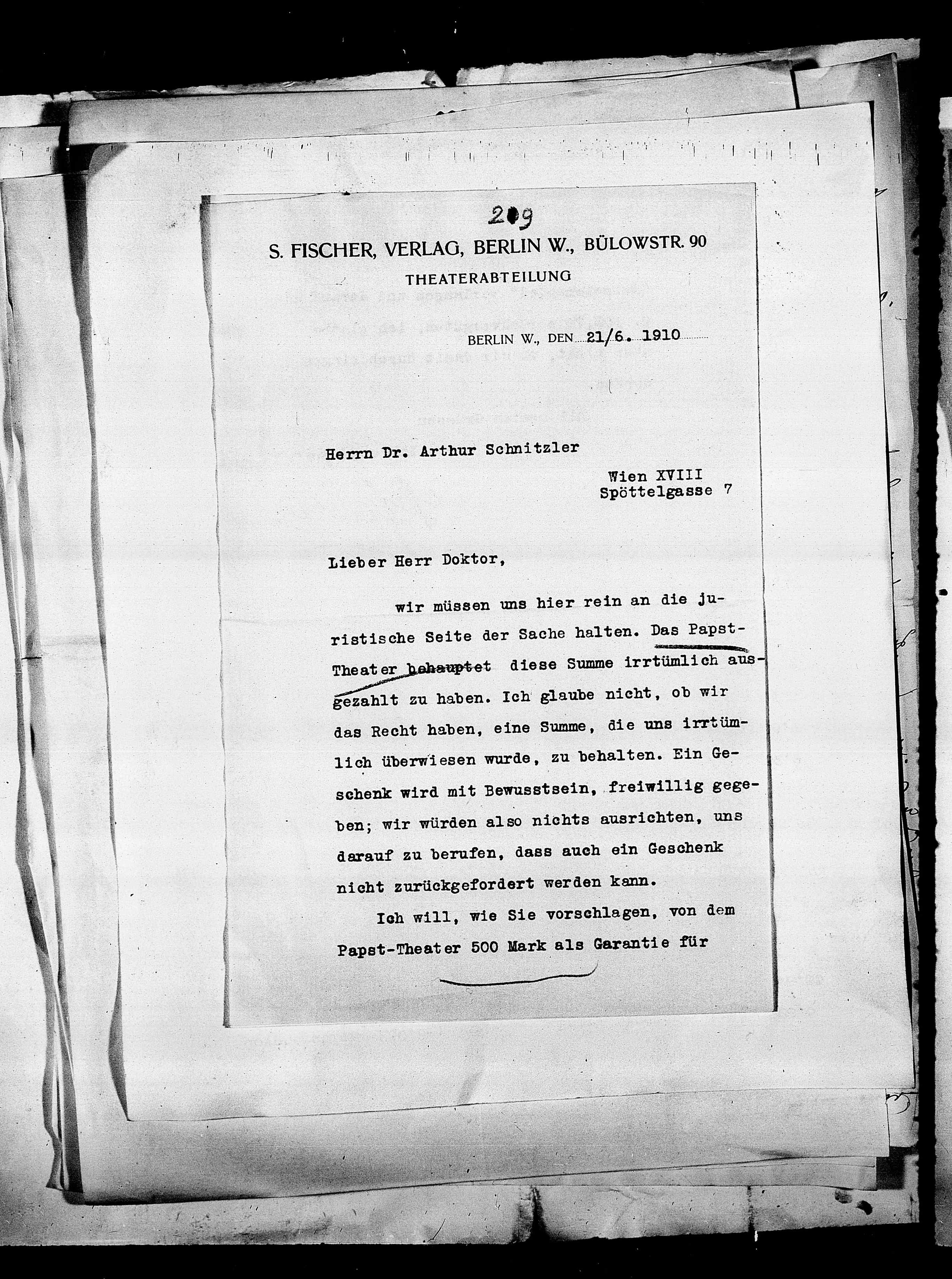 S. FISCHER, VERLAG,’ BERLIN W., BÜLowSTR. 90