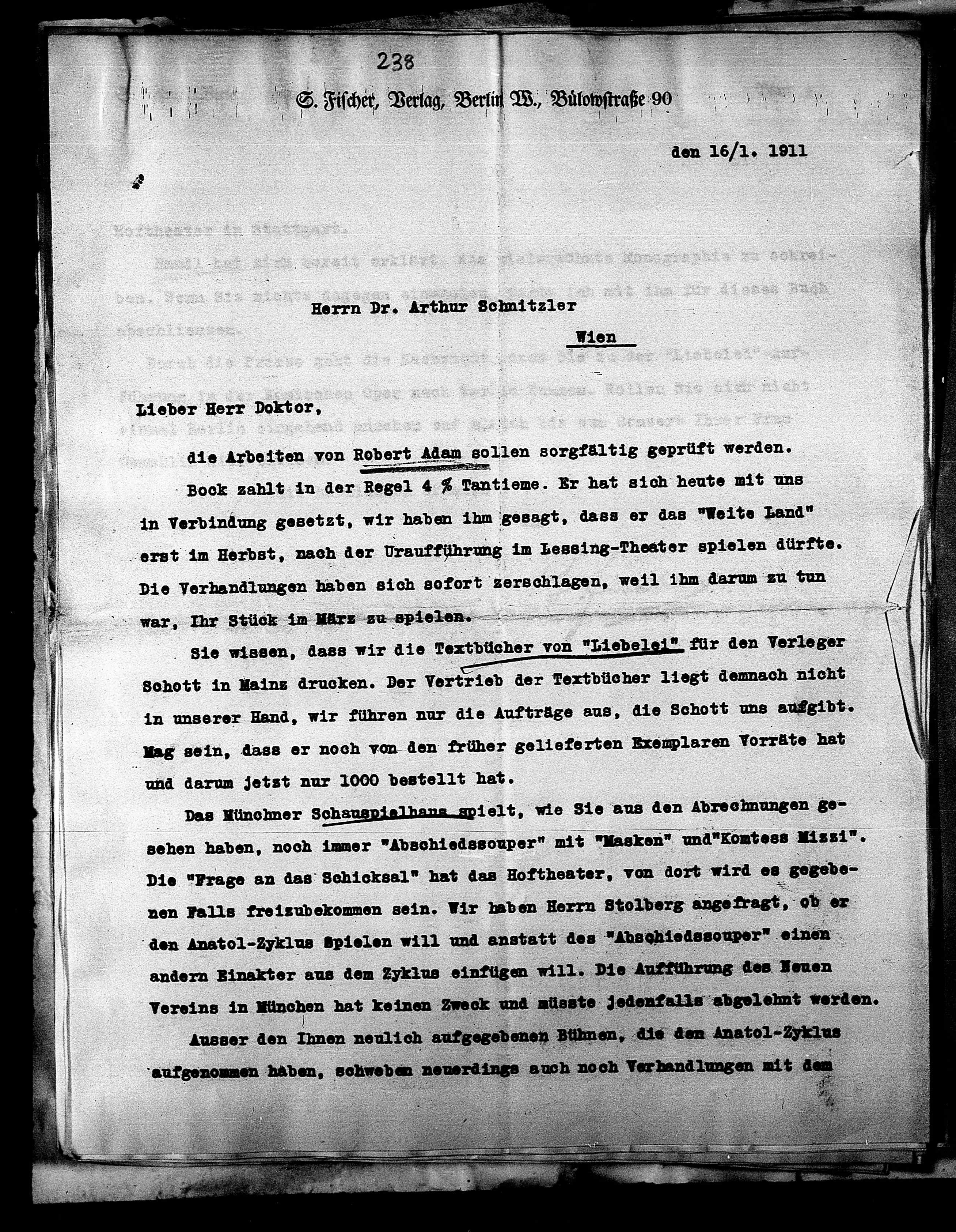 Sie wissen, dass wir die Textbücher von "Liebelei" für den Verleger