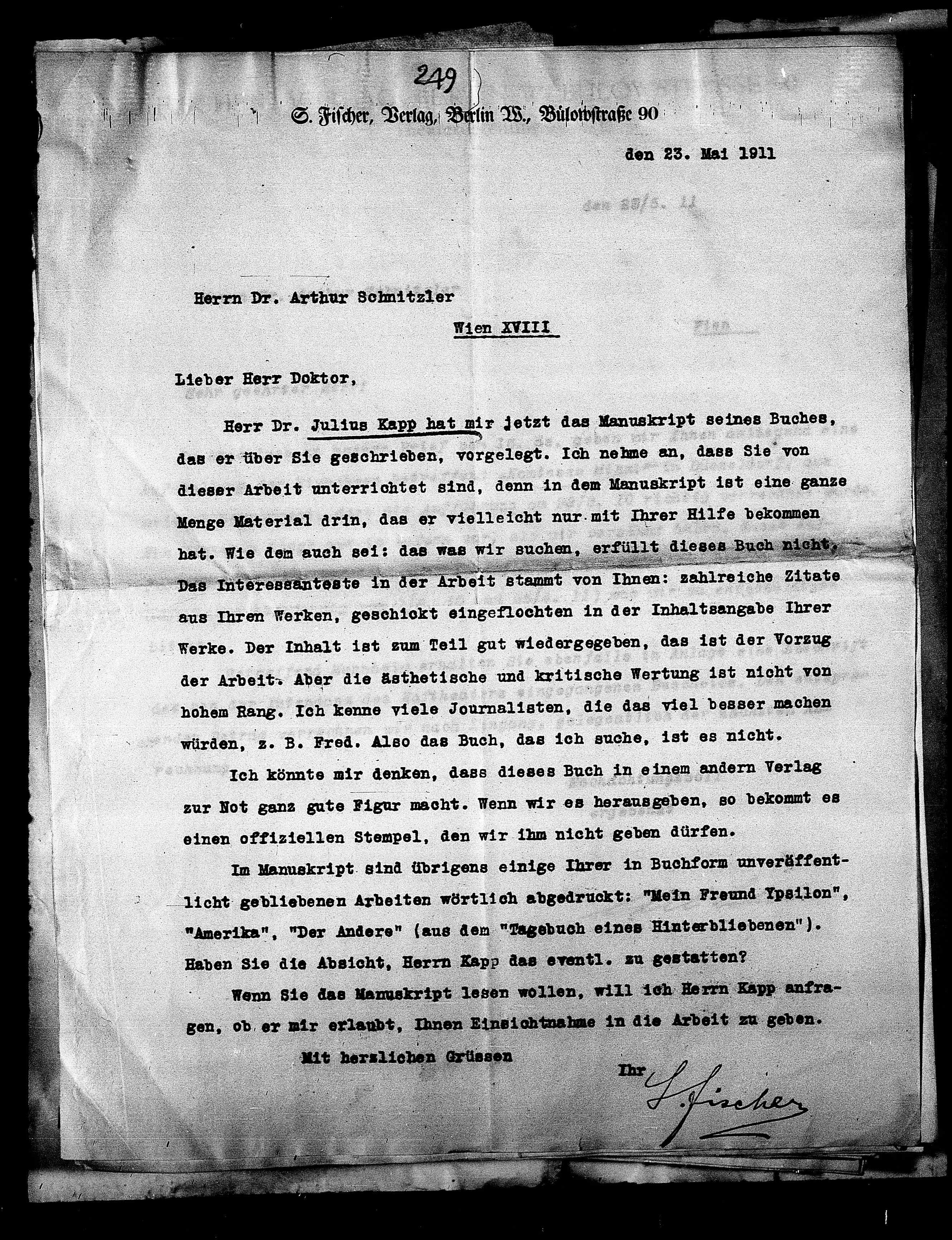 S. Fischer, Verlag, Berlin W., Buſowstraße 90
