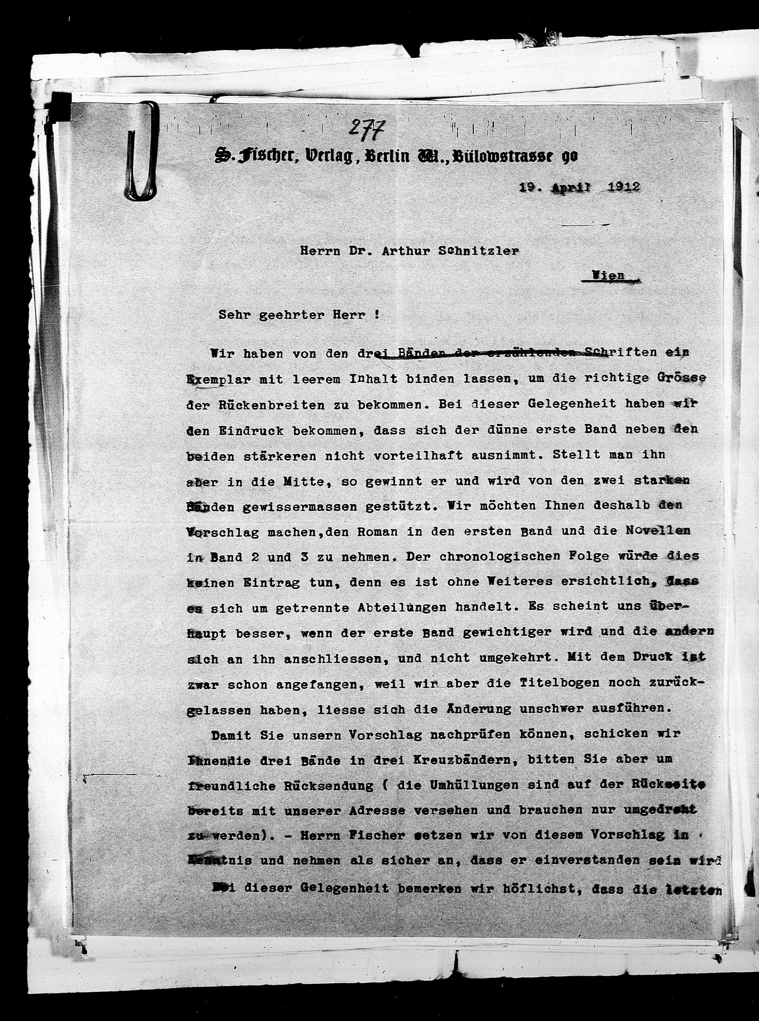 S. Fischer, Verlag, Berlin M., Bülowstrasse 90