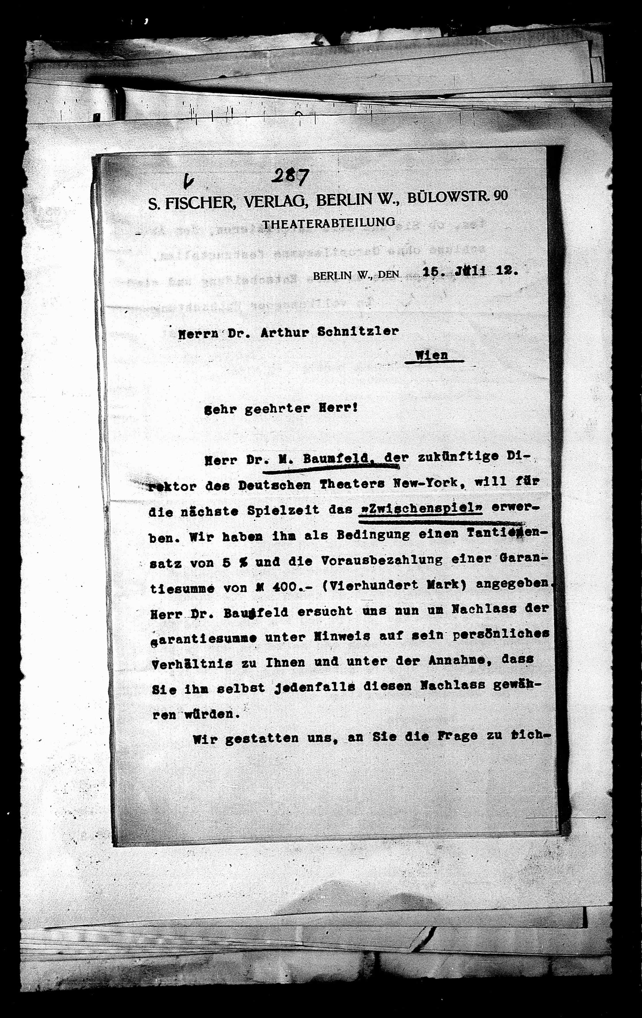 S. FISCHER, VERLAG,“ BERLIN W., BÜLowSTR. 90