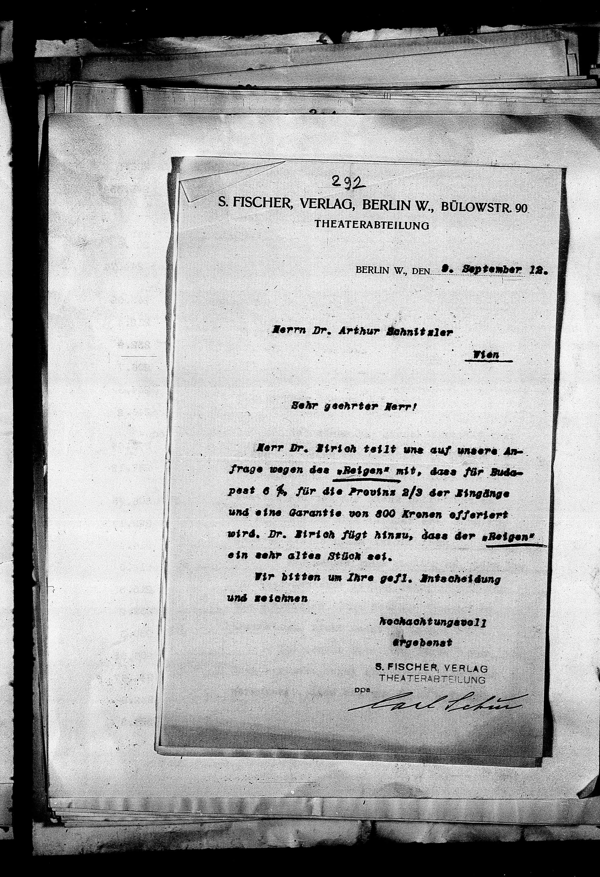 S. FISCHER, VERLAG, BERene W., BÜLowSTR. 90