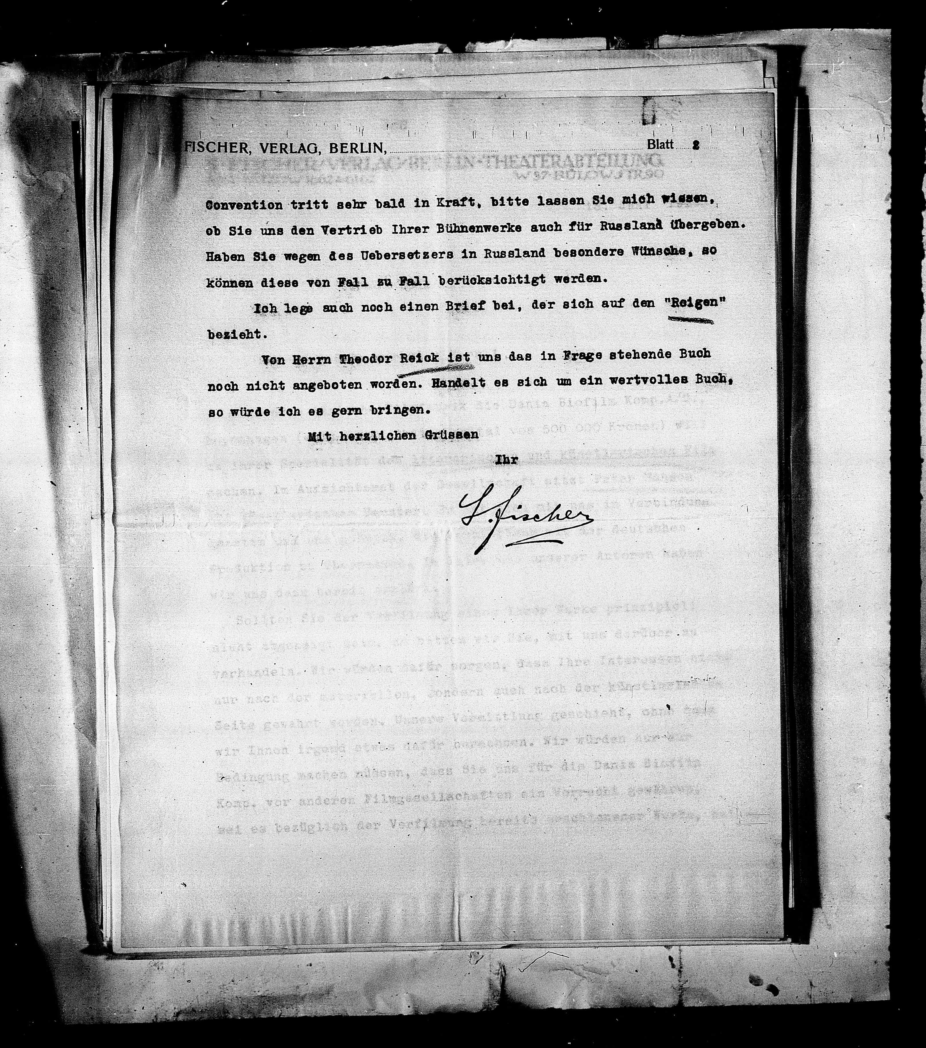 Ich lege auch noch einen Brief bei, der sich auf den "Reigen"