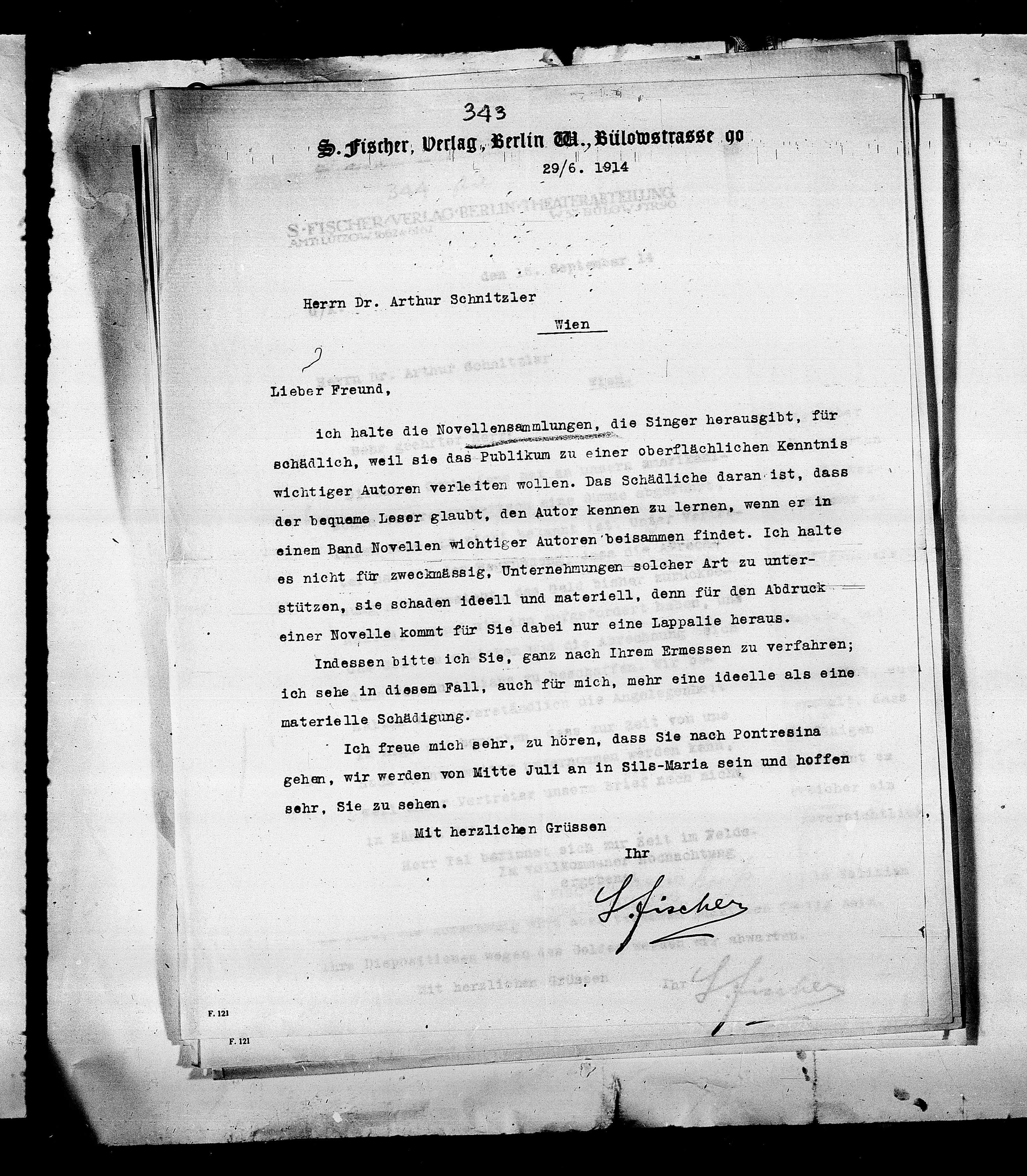 S. Fischer, Verlag, Berlin VA., Bülowstrasse 90