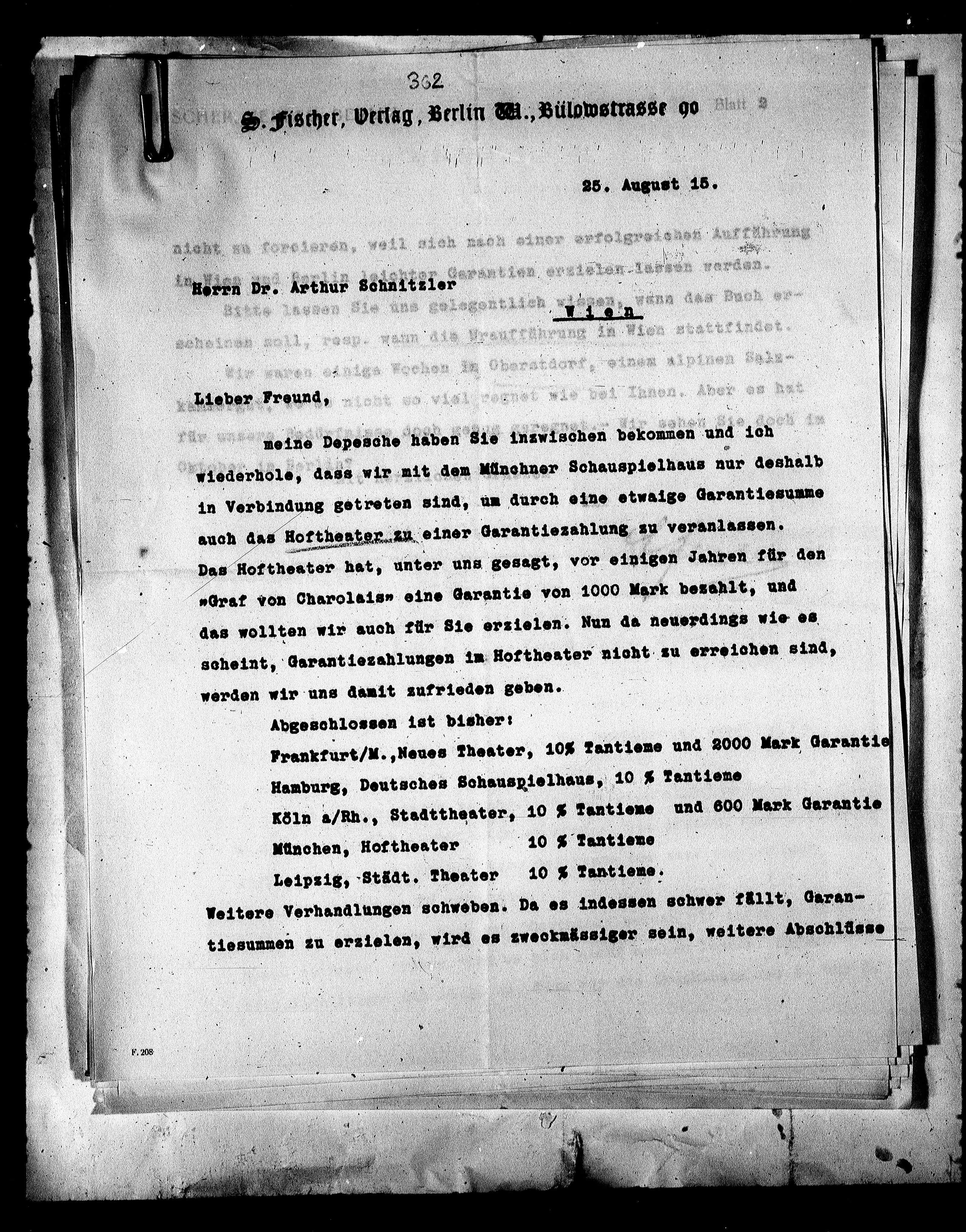 Frankfurt/M., Neues Theater, 10K Tantiene und 2000 Mark Garantie