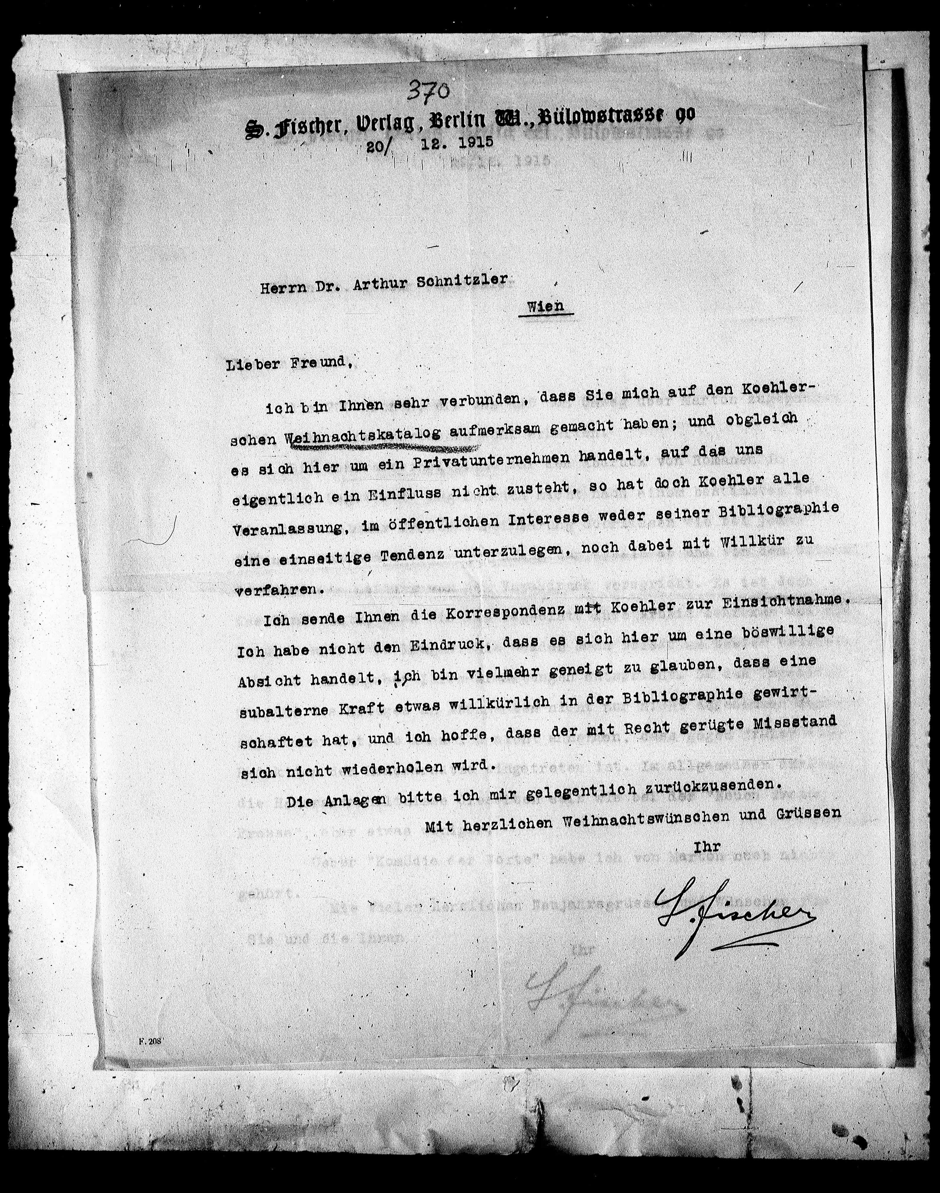 S. Fischer, Verlag, Berlin M., Bülowstrasse 90