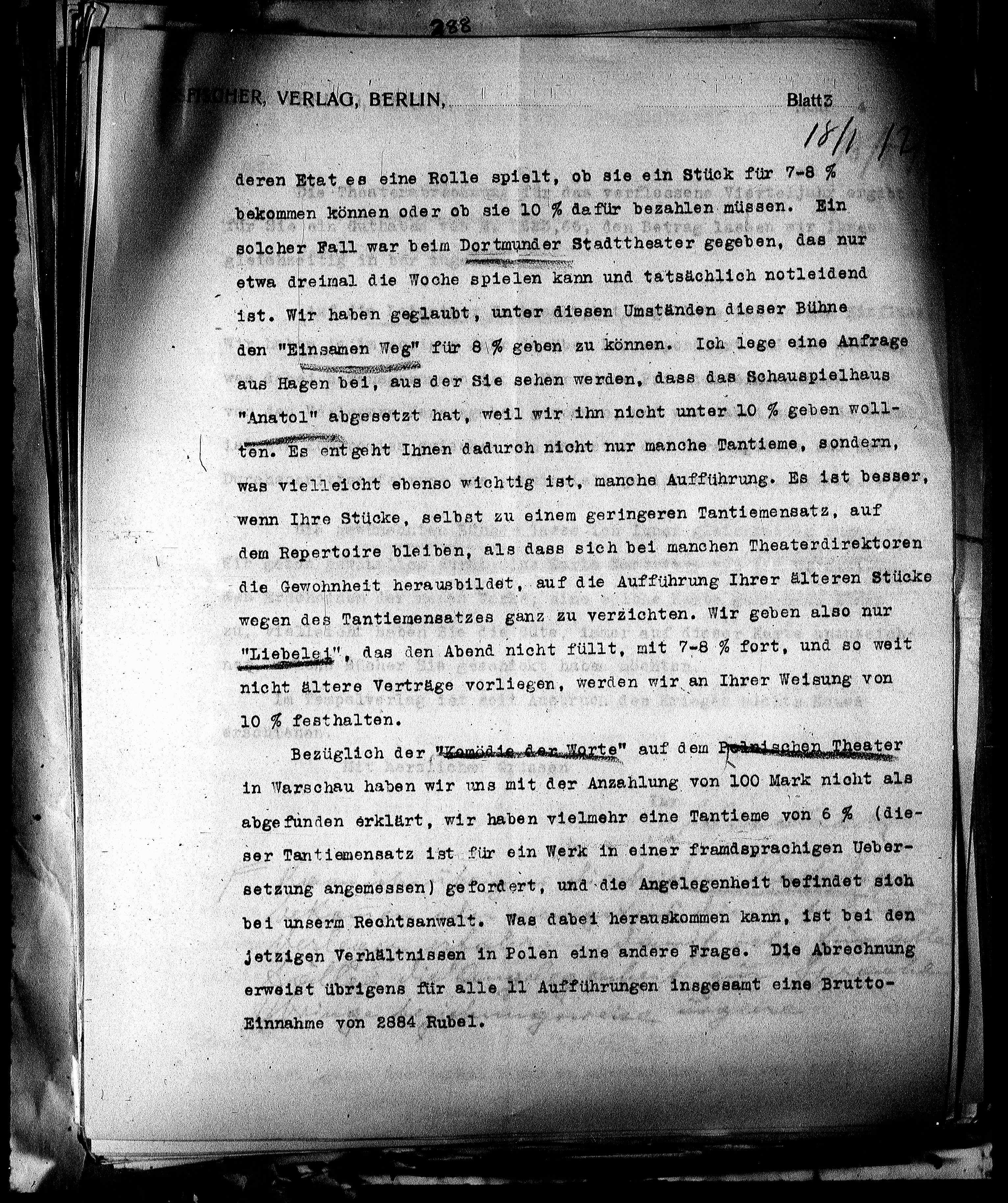 wegen des Tantiemensatzes ganz zu verzichten. Wir geben also nur
