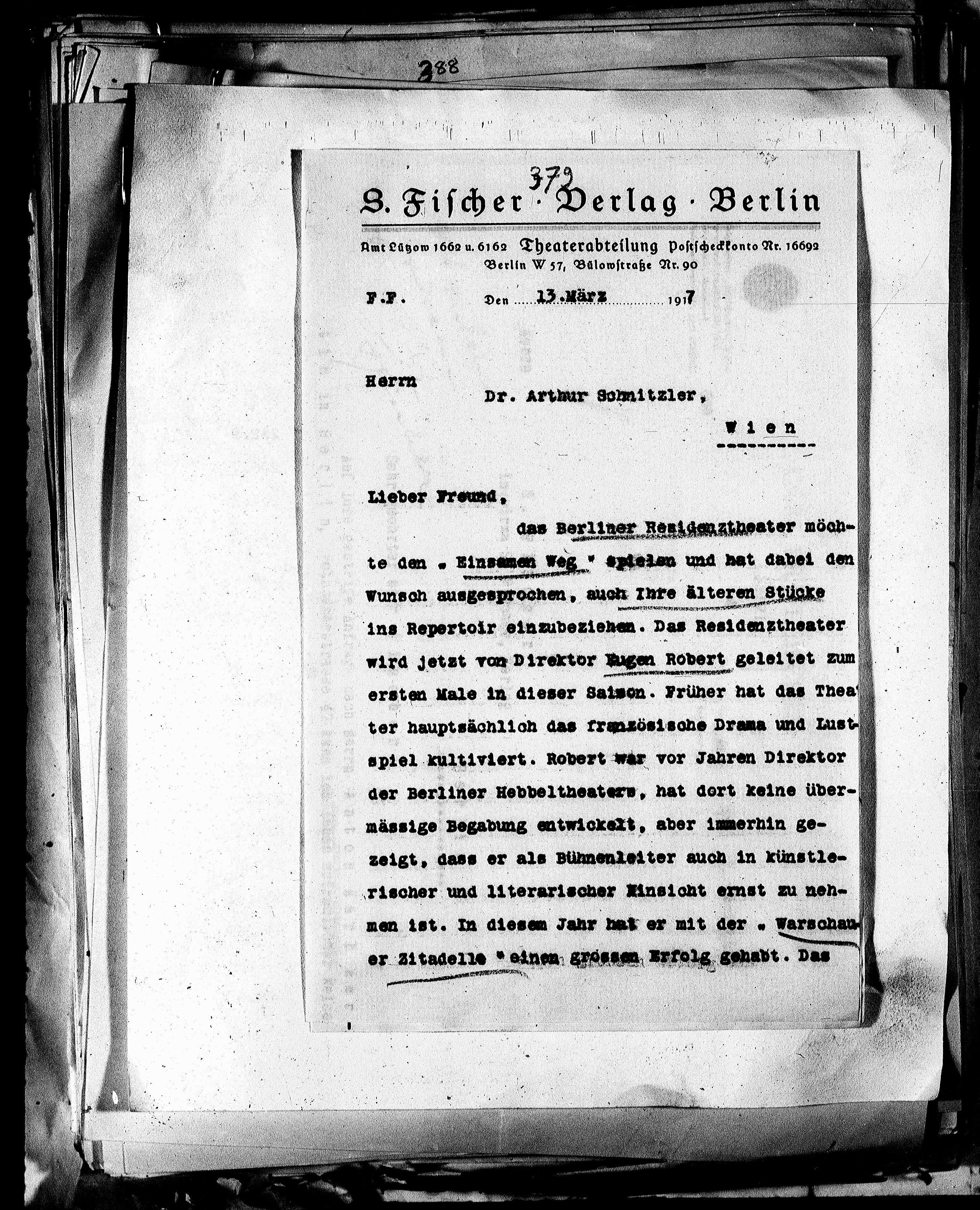 Amt Lützow 1662 u. 6162 Theaterabteilung postscheckkonto Nr. 16692