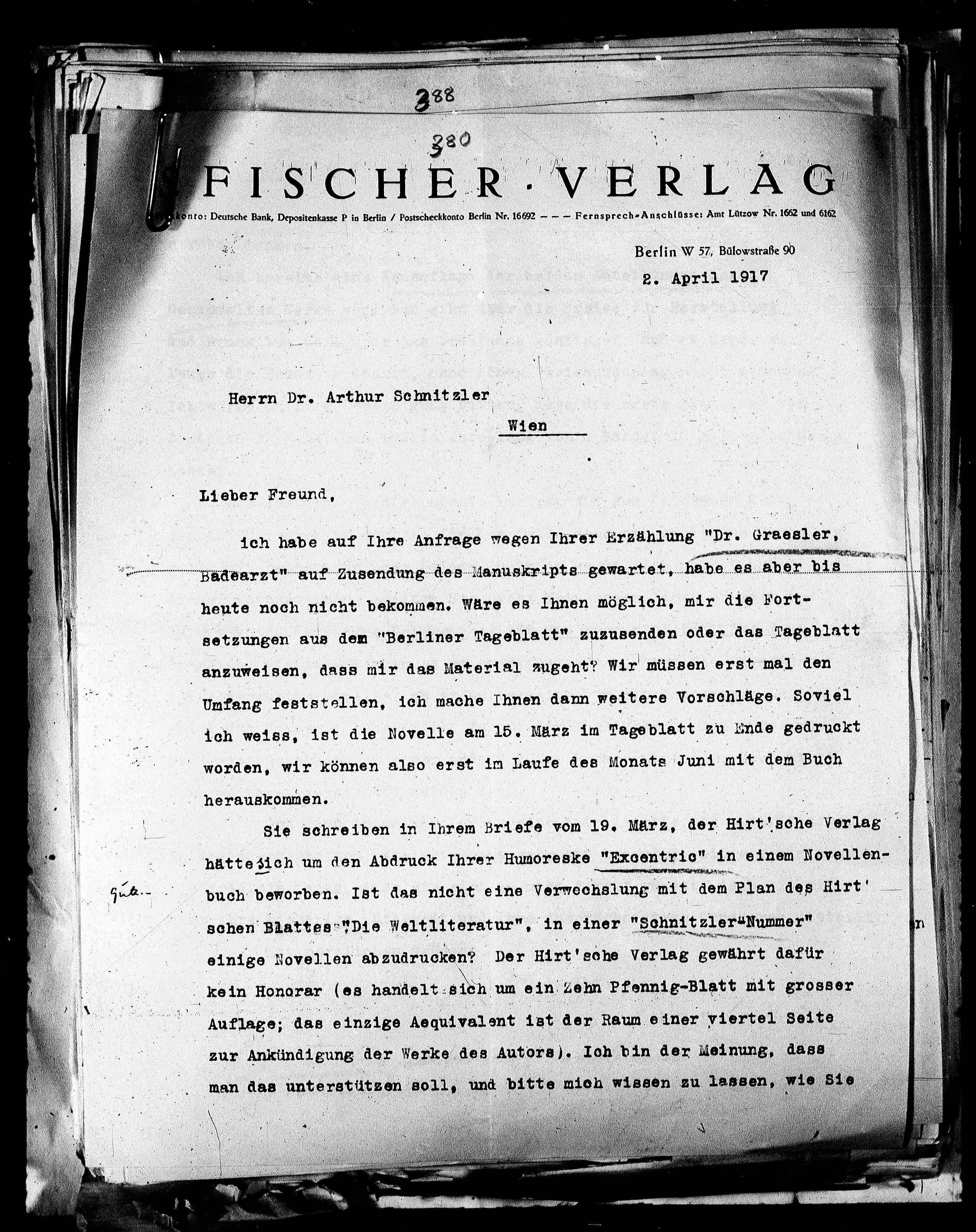 ich habe auf Ihre Anfrage wegen Ihrer Erzählung "Dr. Graesler,