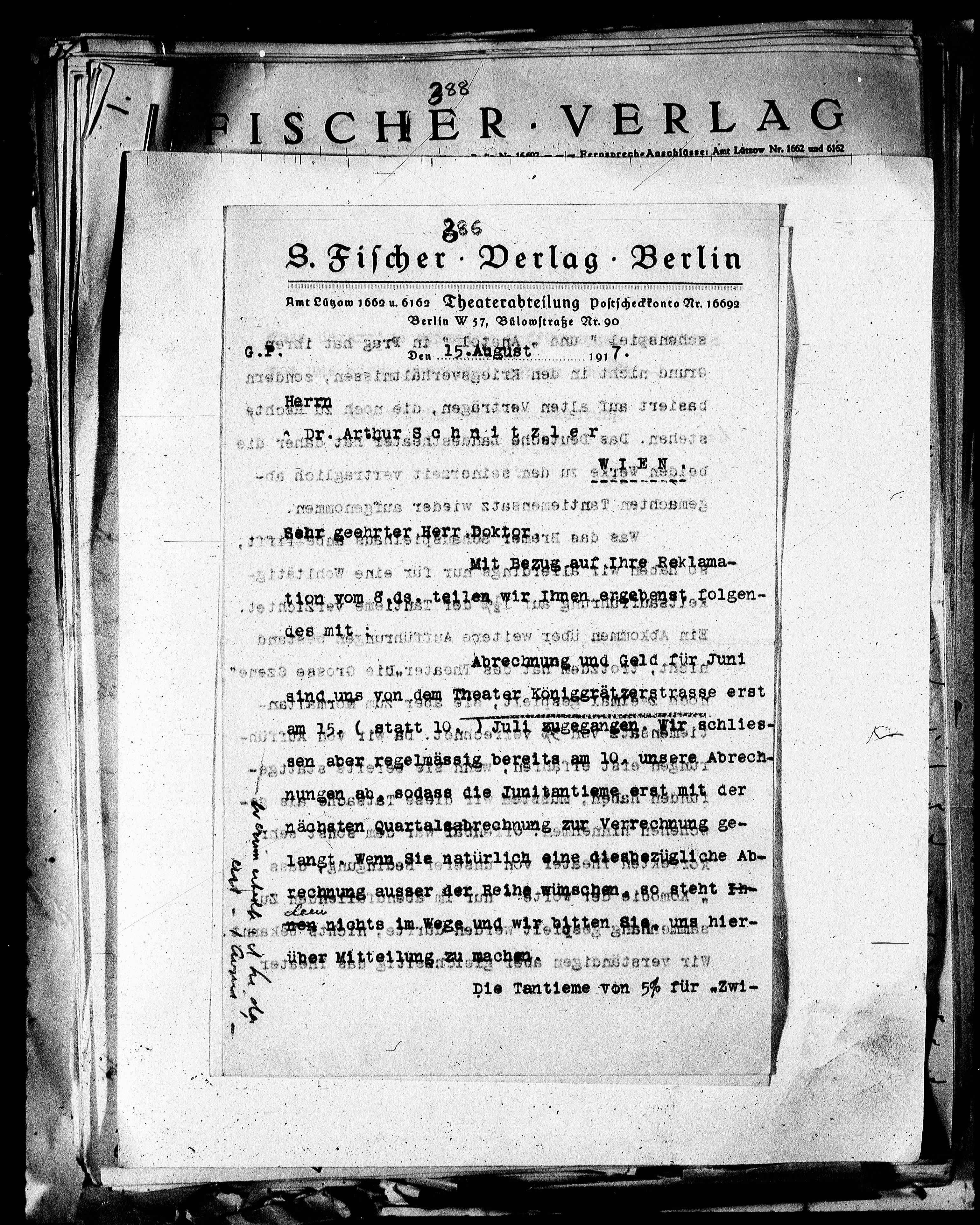 Amt Lützow 1662 u. 6162 Theaterabteilung Postscheckkonto Nr. 16692