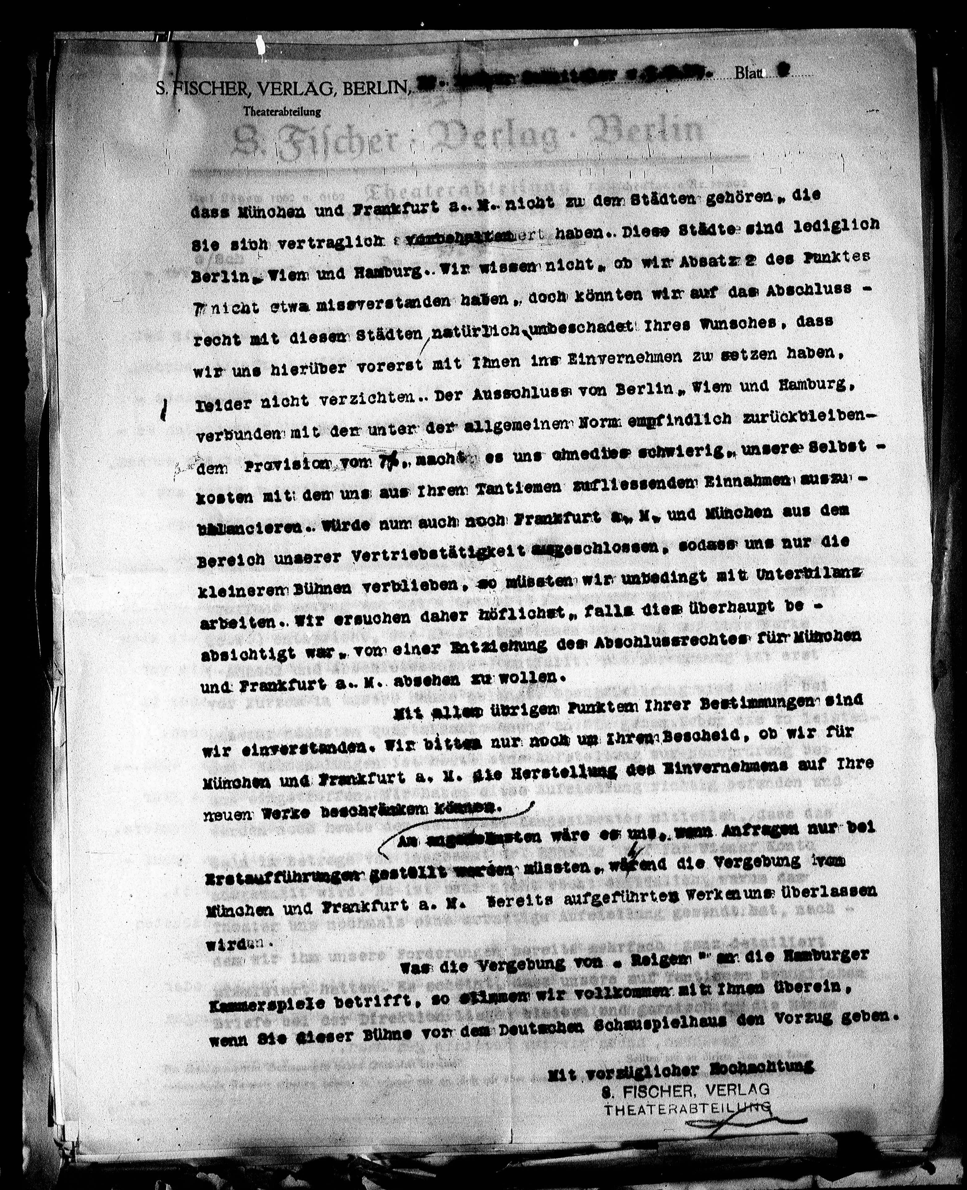 und Frankfurt a. M. absehen zu wollen.