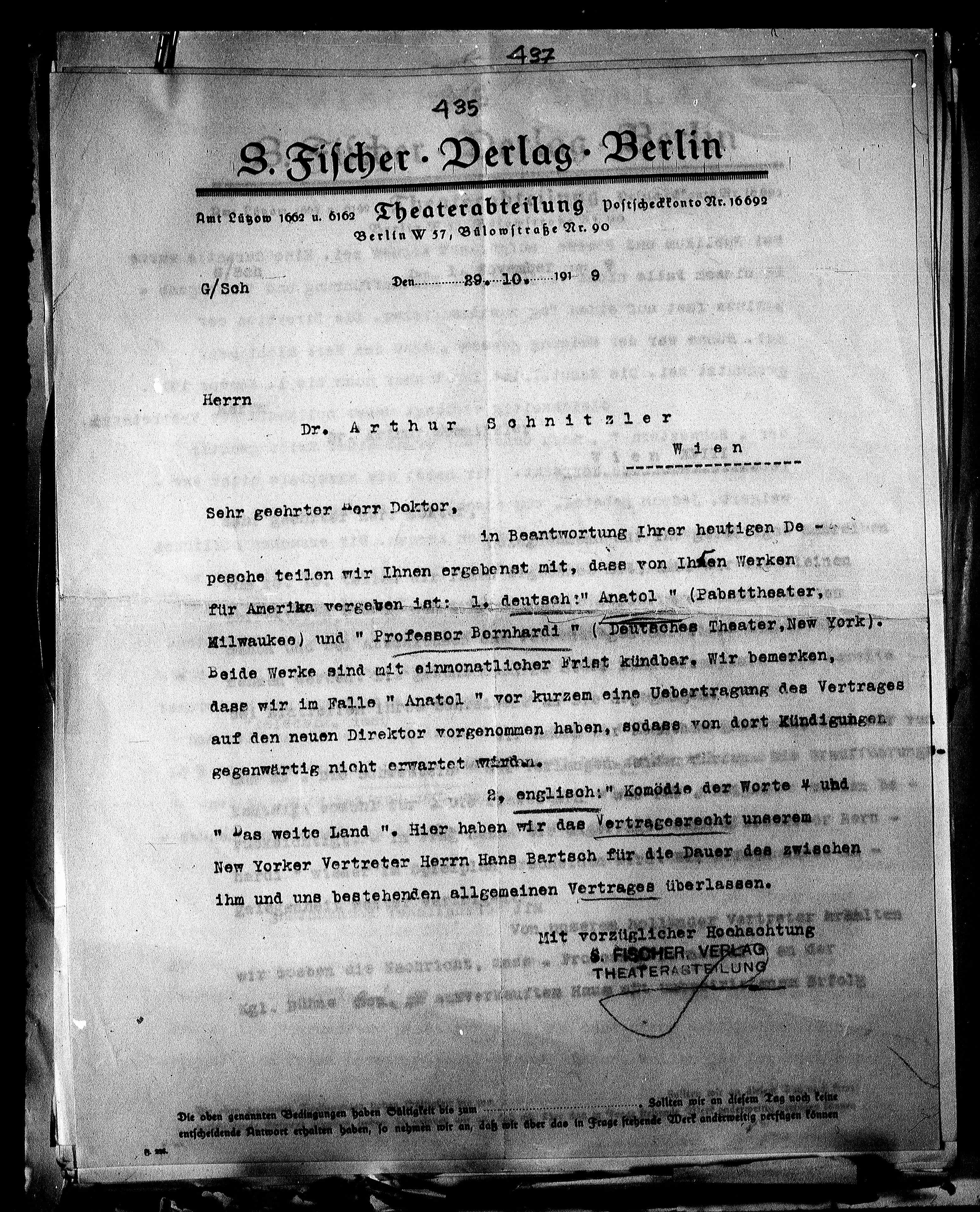 für Amerika vergeben ist: 1. deutsch: „Anatol “ (Pabsttheater,