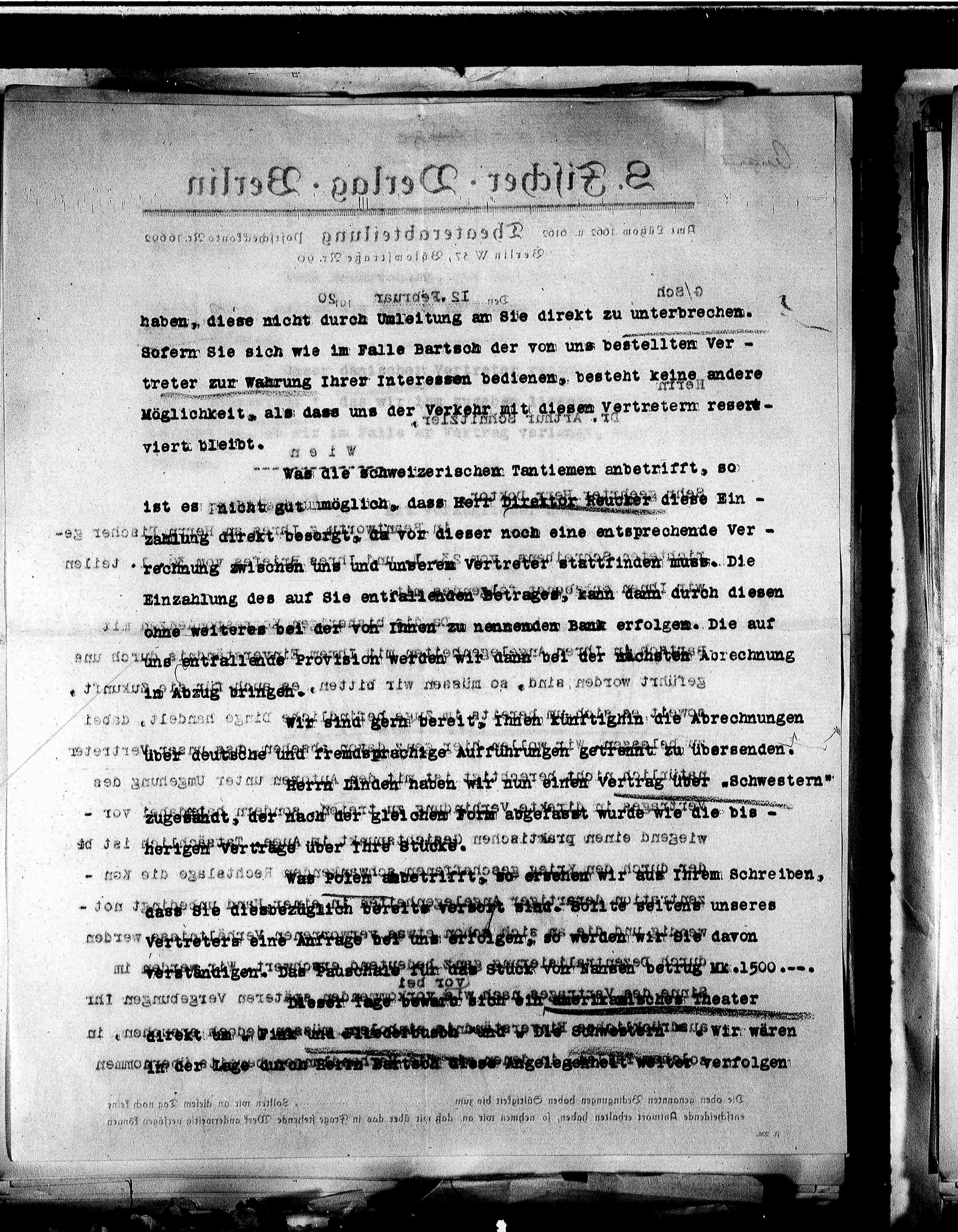### herigen verträge über Ihre Stücke.
