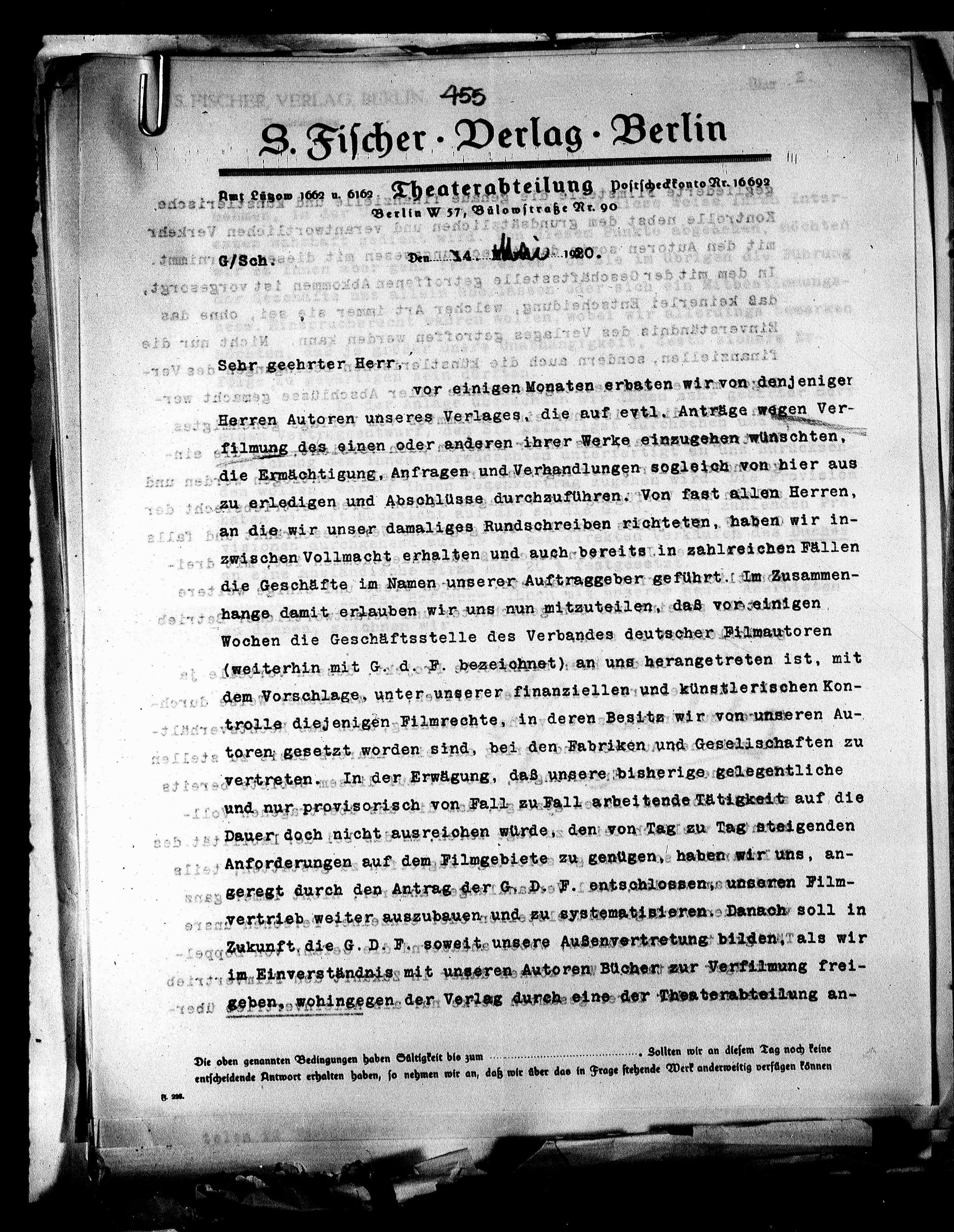 geregt durch den Antrag der G. D. F. entschlossen, unseren Film-