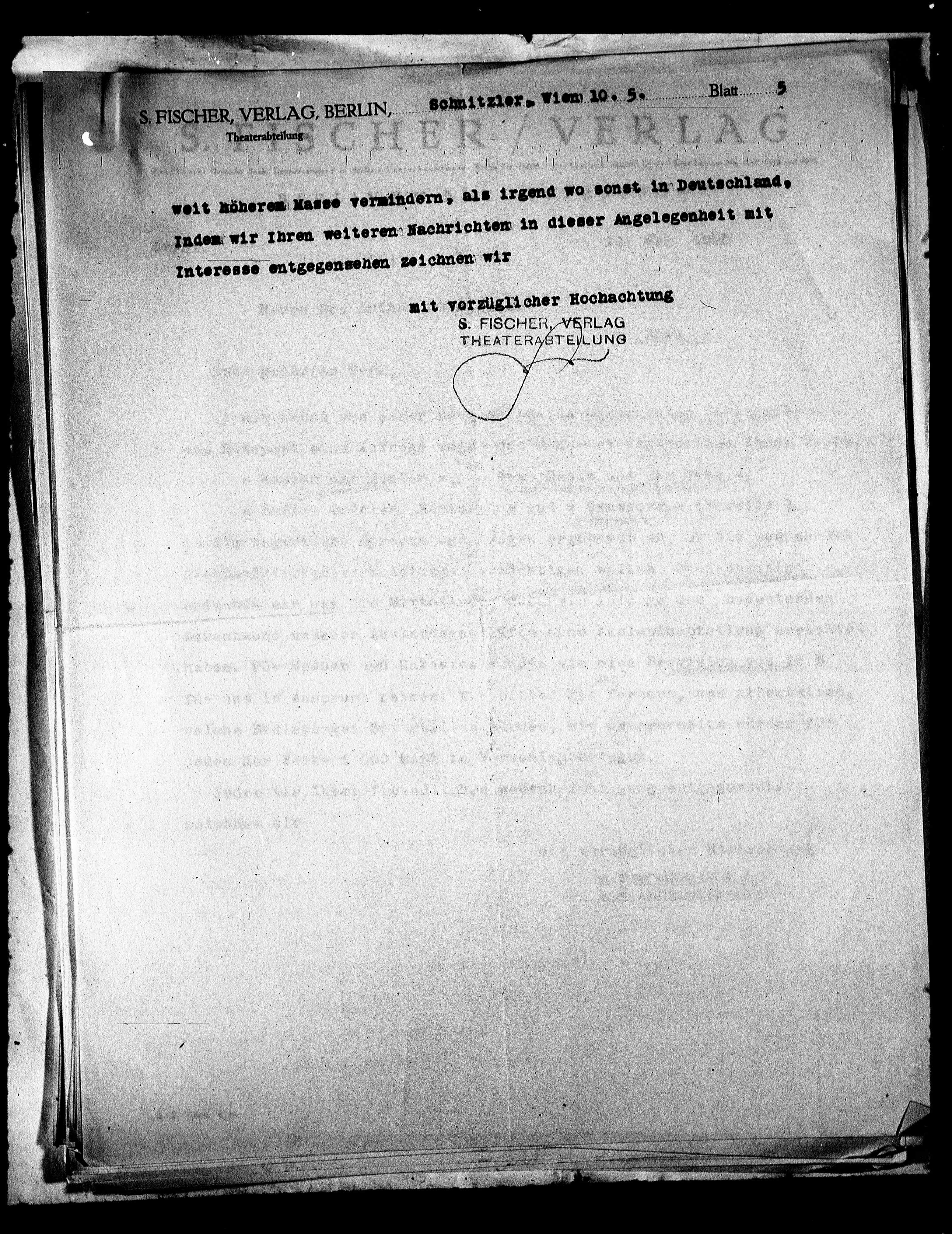 S. FISCHER,VERLAG, BERLIN, Sohnitzler, Vien 10.5. Blatt 5