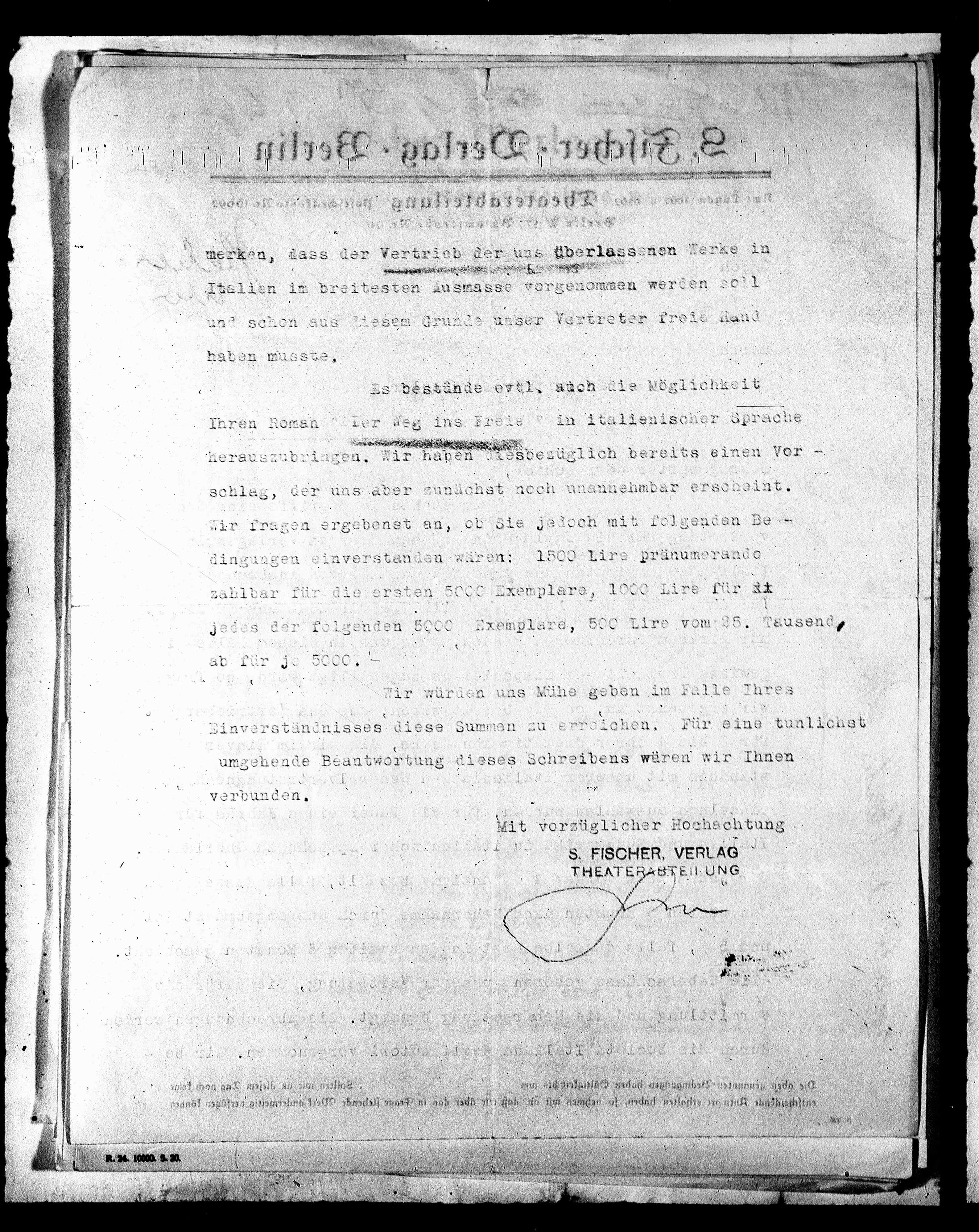 dingungen einverstanden wären: 1500 Lire pränumerando