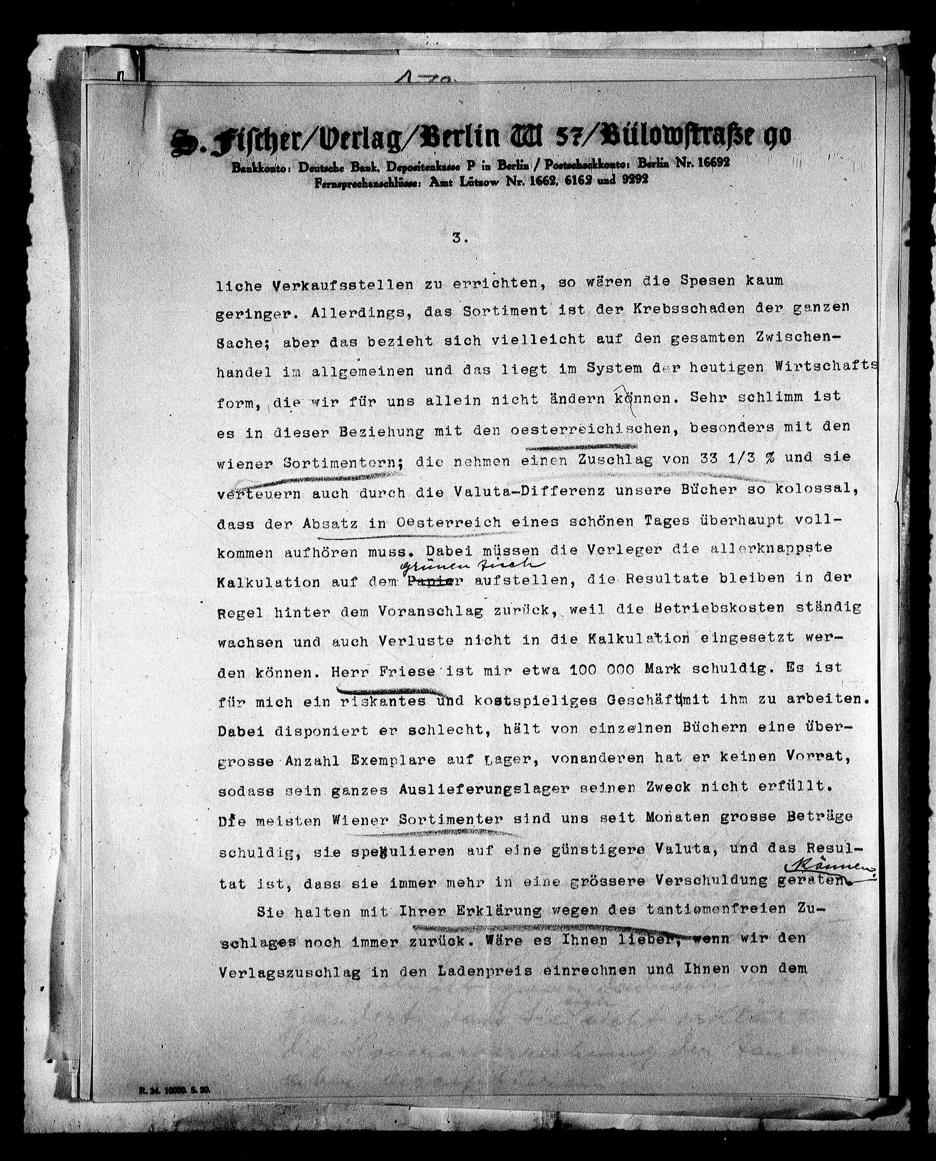 S. Fischer/Verlag/Berlin M 57/Bülowstrasse 9o