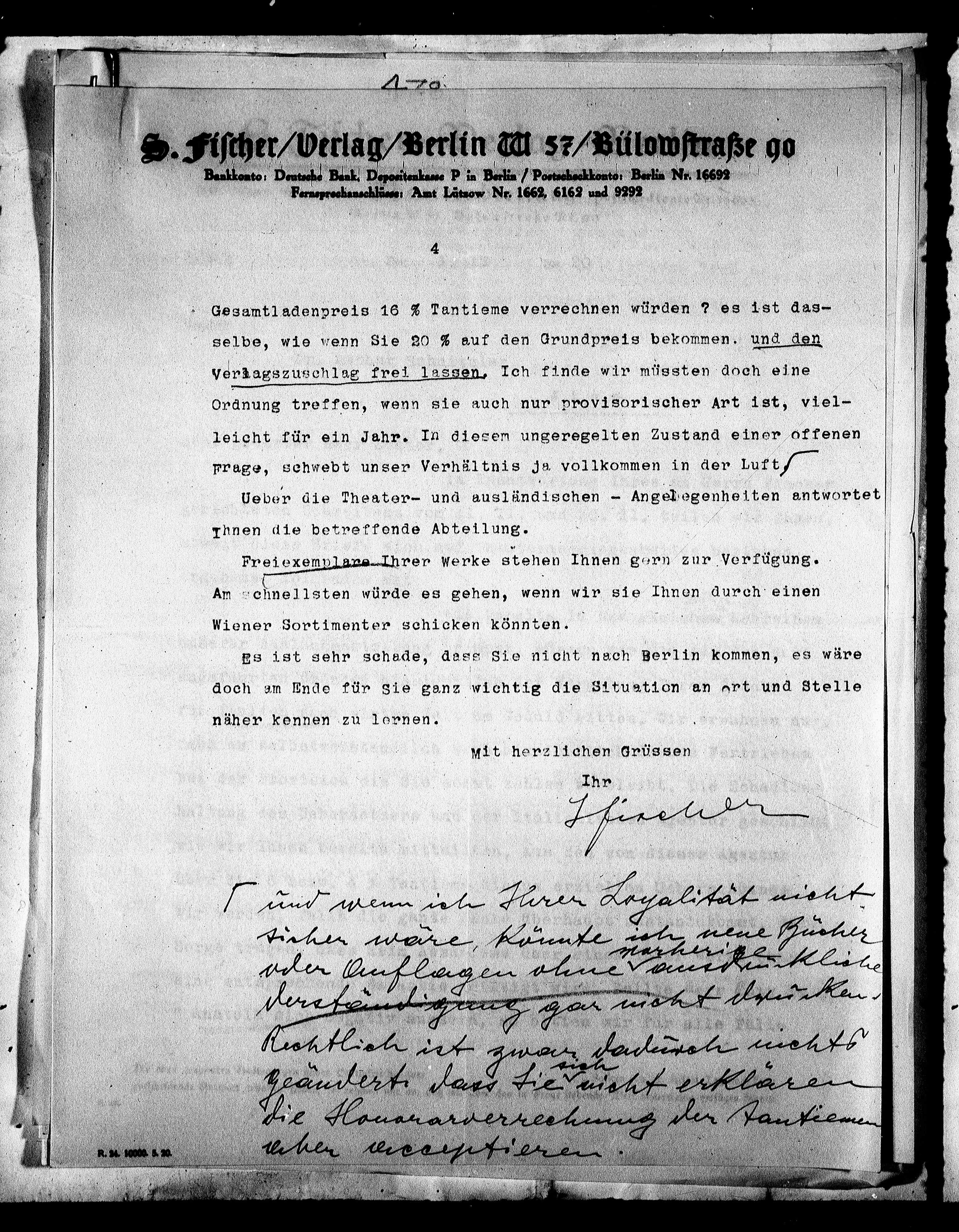 S. Fischer/Verlag/Berlin W 57/Bülowstraße 90