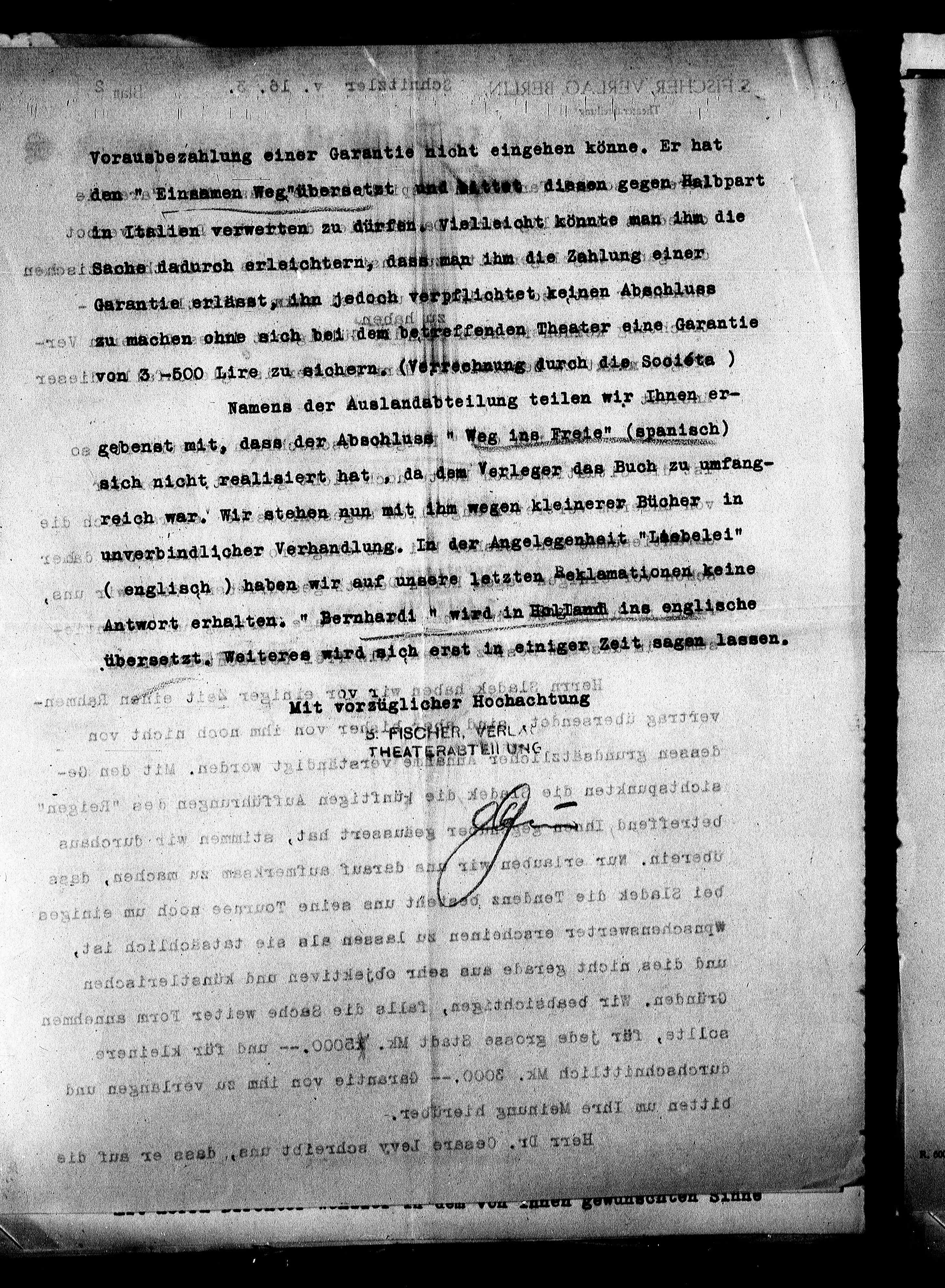 zu machen ohne sich bei dem betreffenden Theater eine Garantie