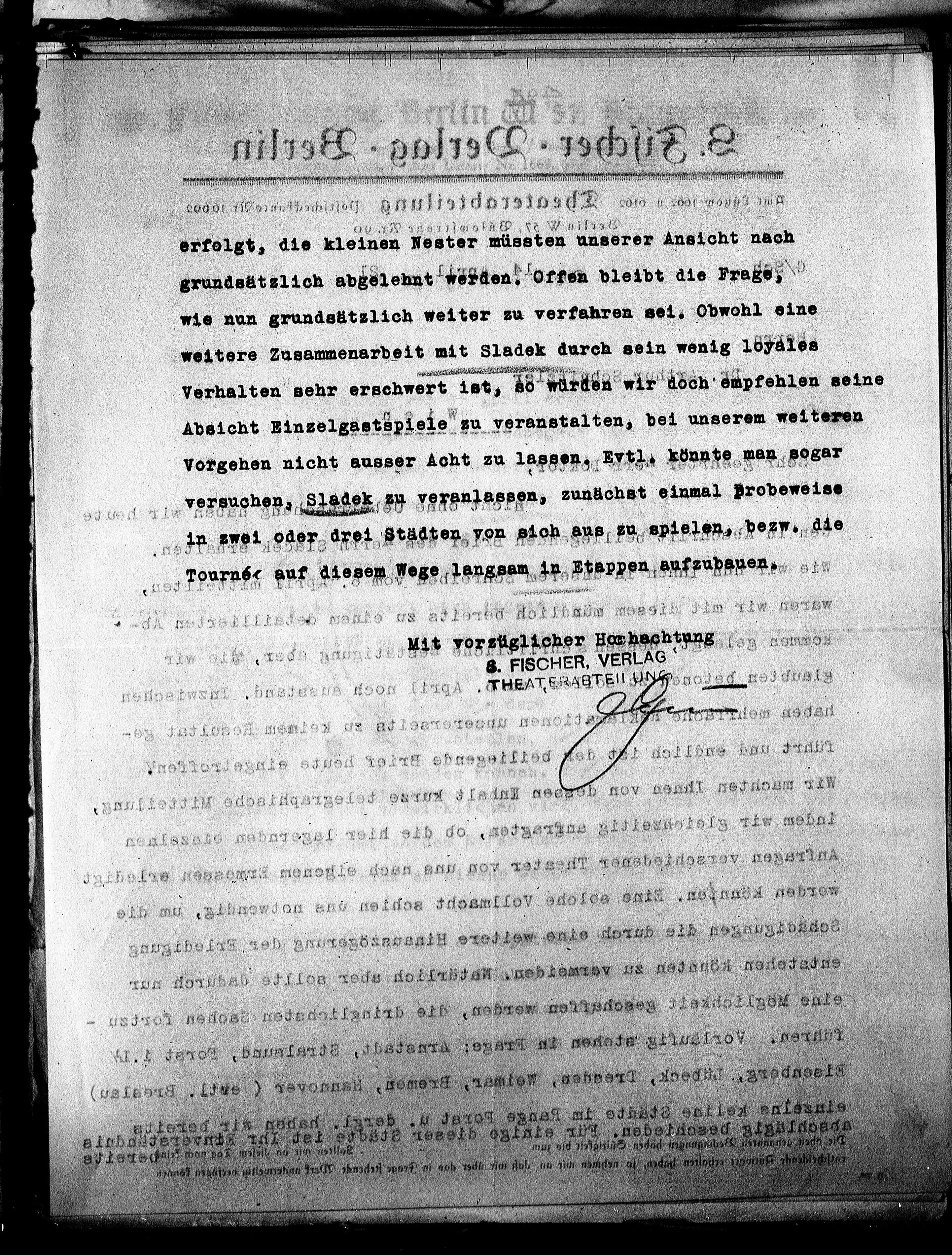 weitere Zusammenarbeit mit Sladek durch sein wenig löyales