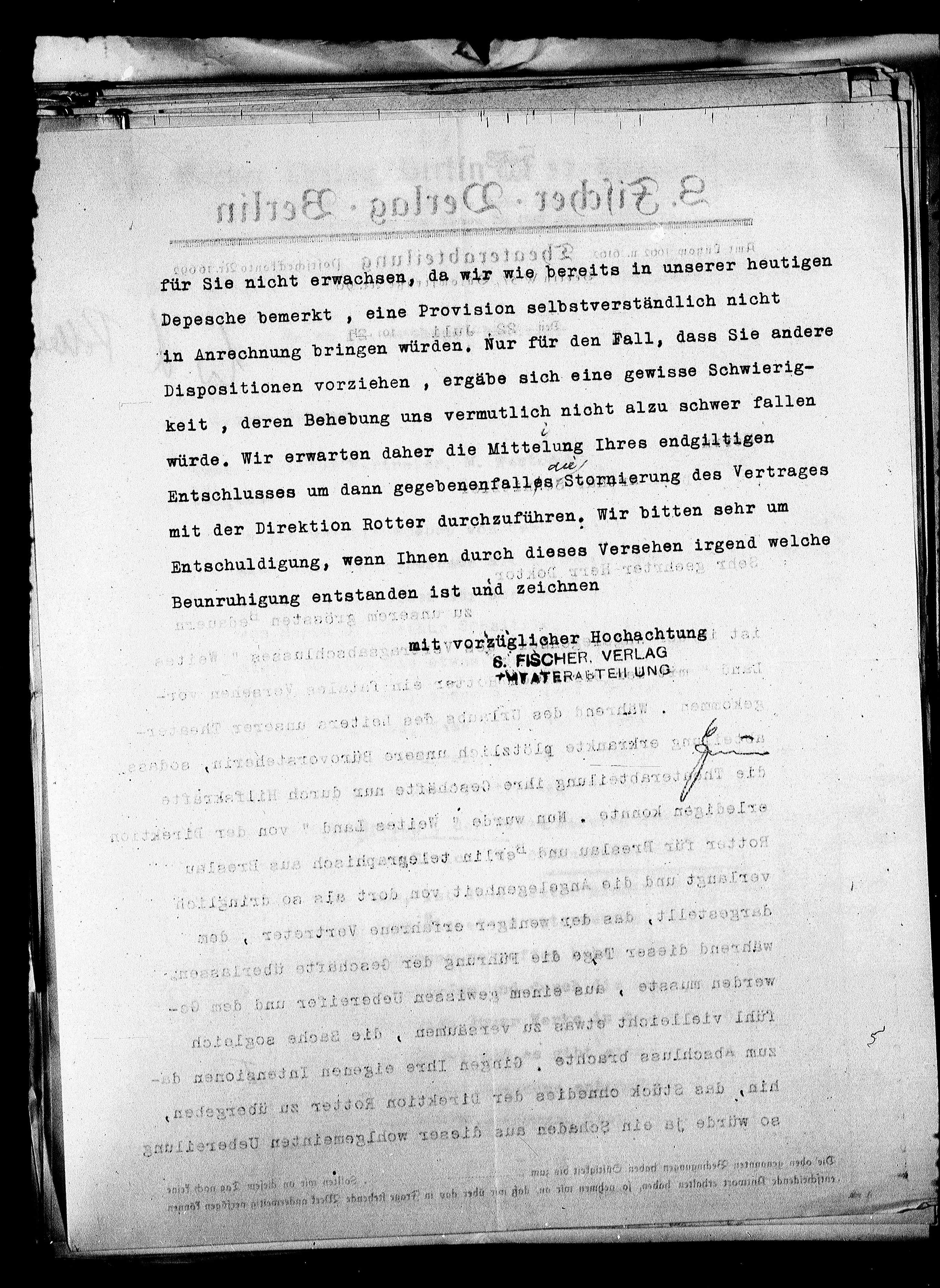 Depesche bemerkt, eine Provision selbstverständlich nicht