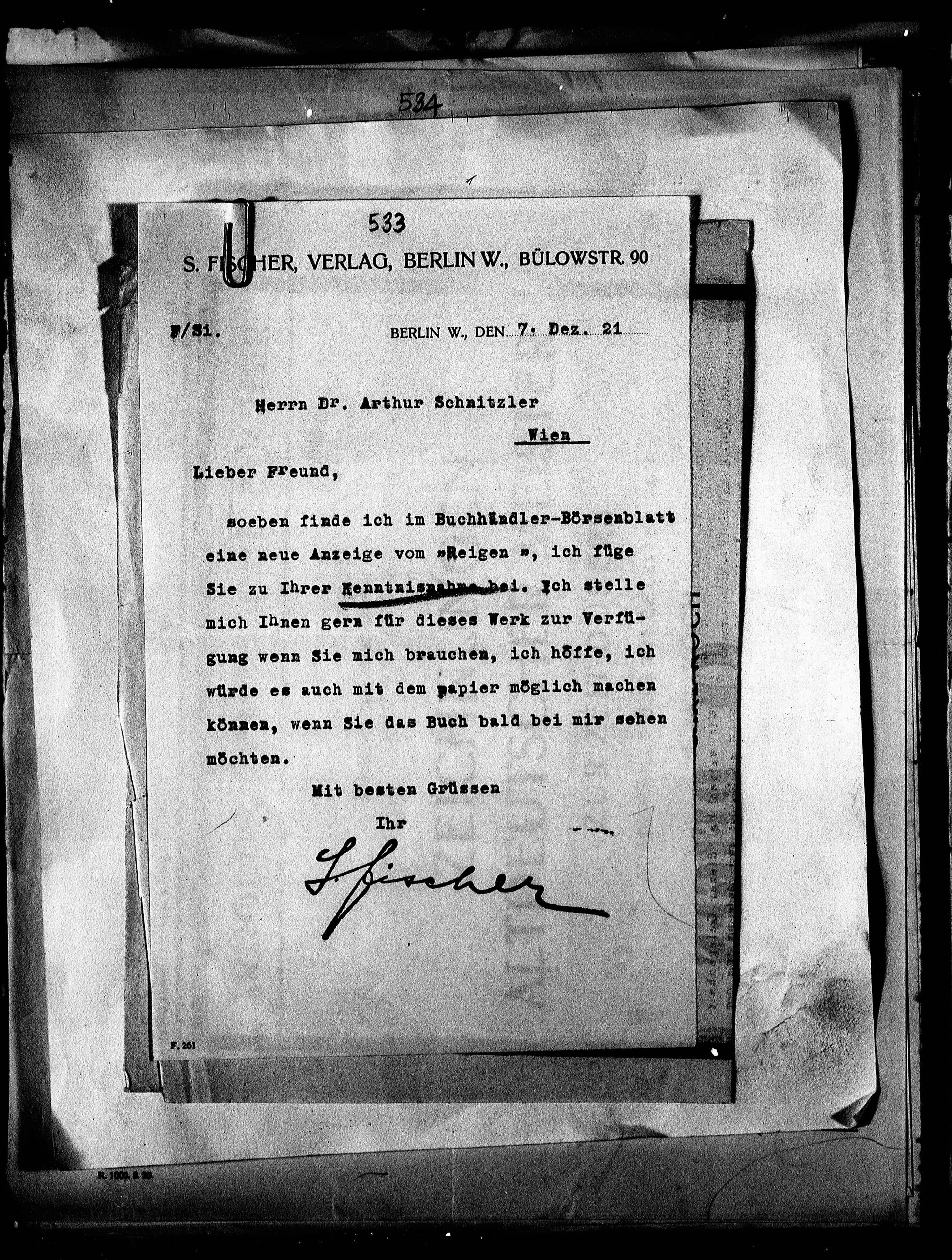 FISCHER,VERLAG, BERLIN W., BÜLowSTR. 90