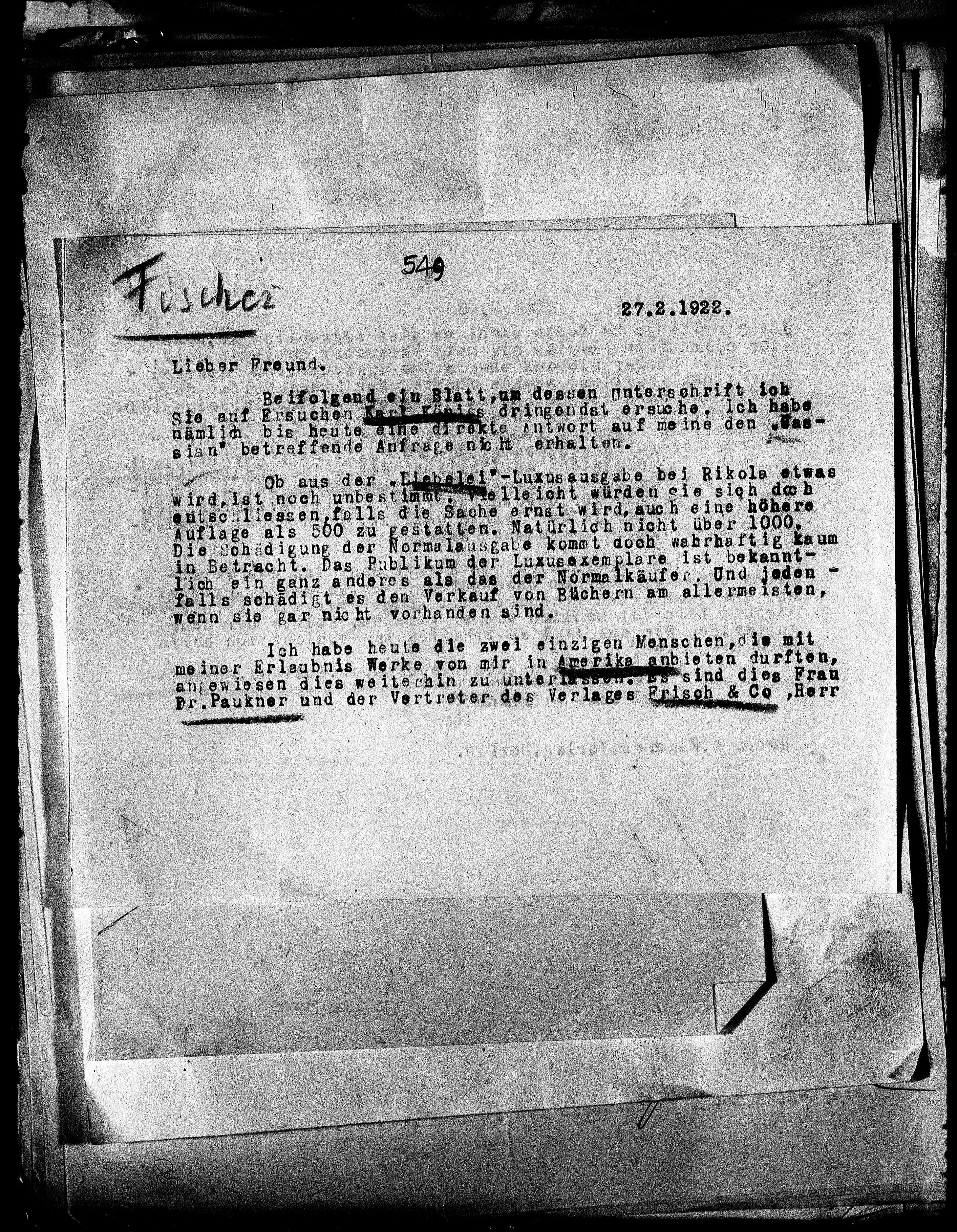 meiner Erlaubnis Werke von mir in Amerika anbieten durften,
