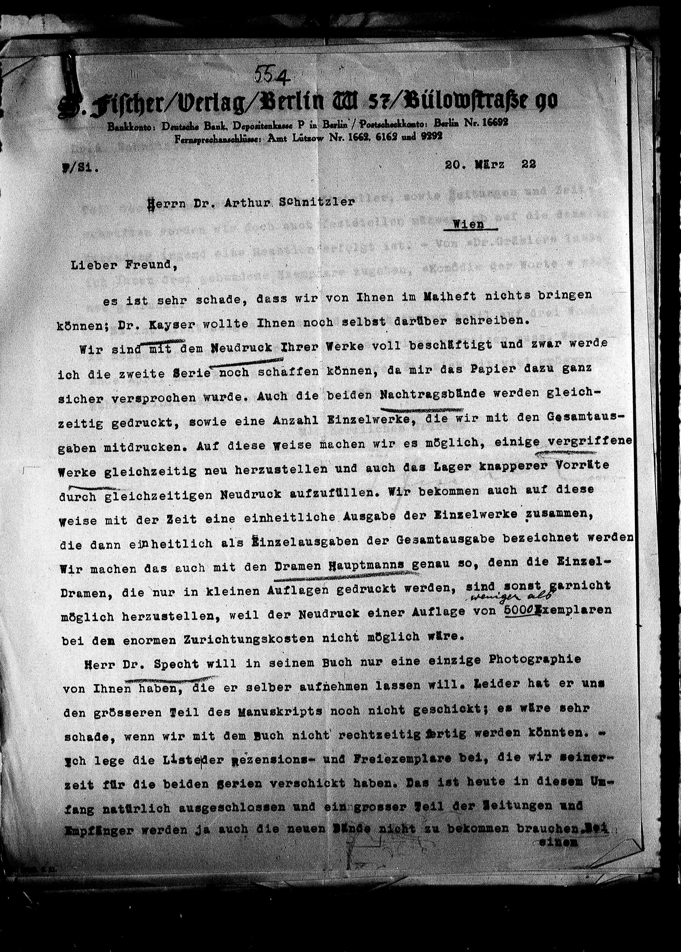 Wir sind mit dem Neudruck Ihrer Werke voll beschäftigt und zwar werde