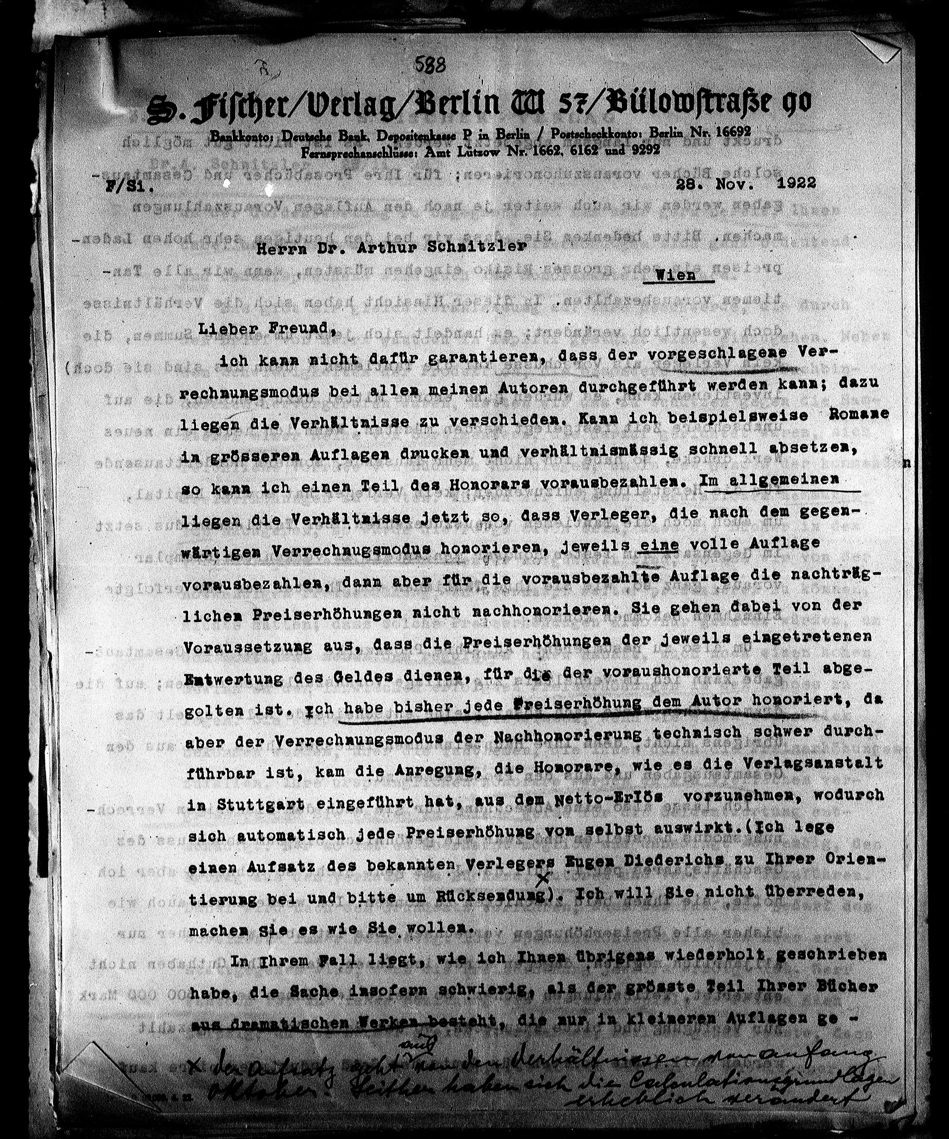 führbar ist, kam die Anregung, die Honorare, wie es die Verlagsanstalt
