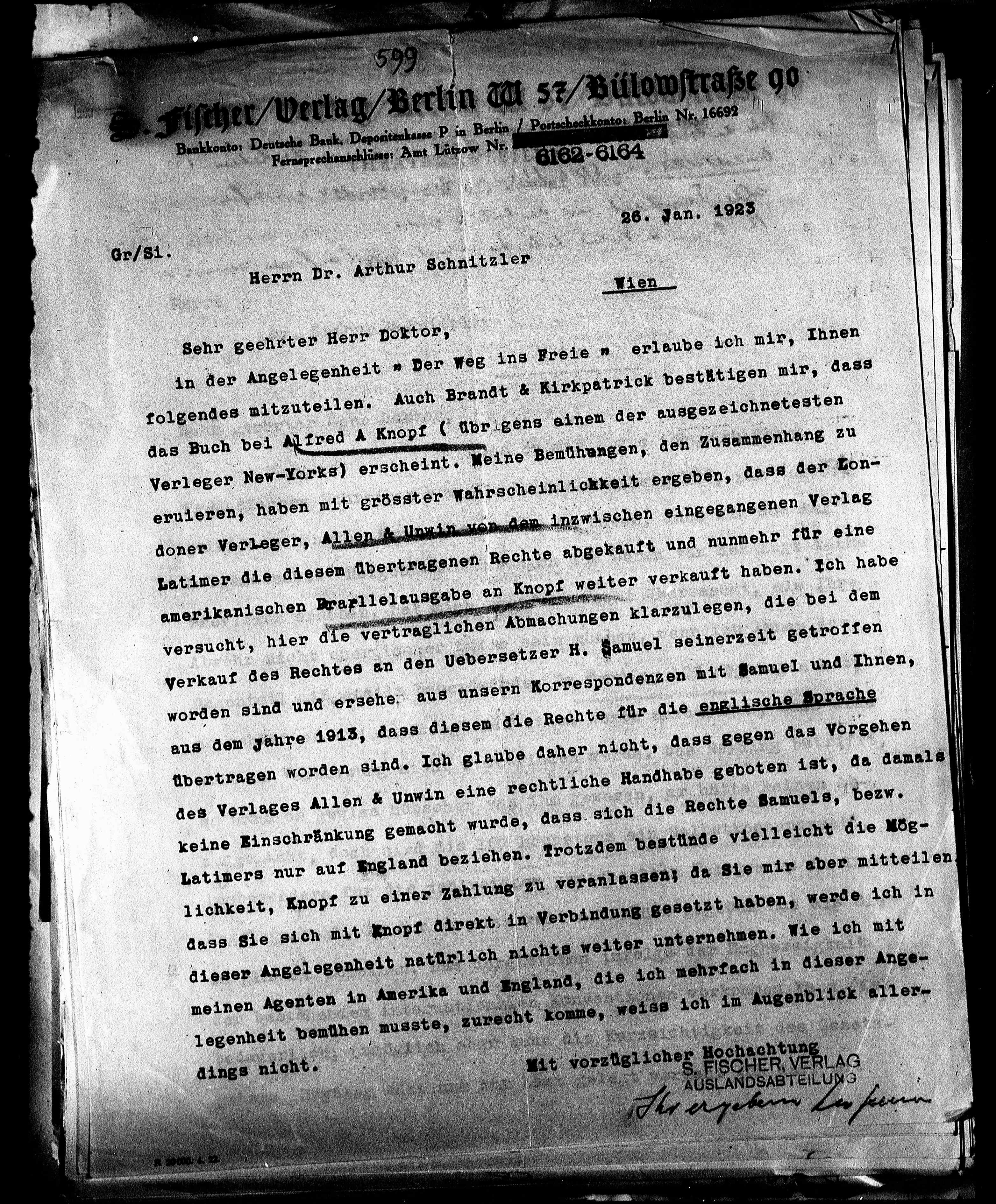 Verkauf des Rechtes an den Uebersetzer H. Samuel seinerzeit getroffen
