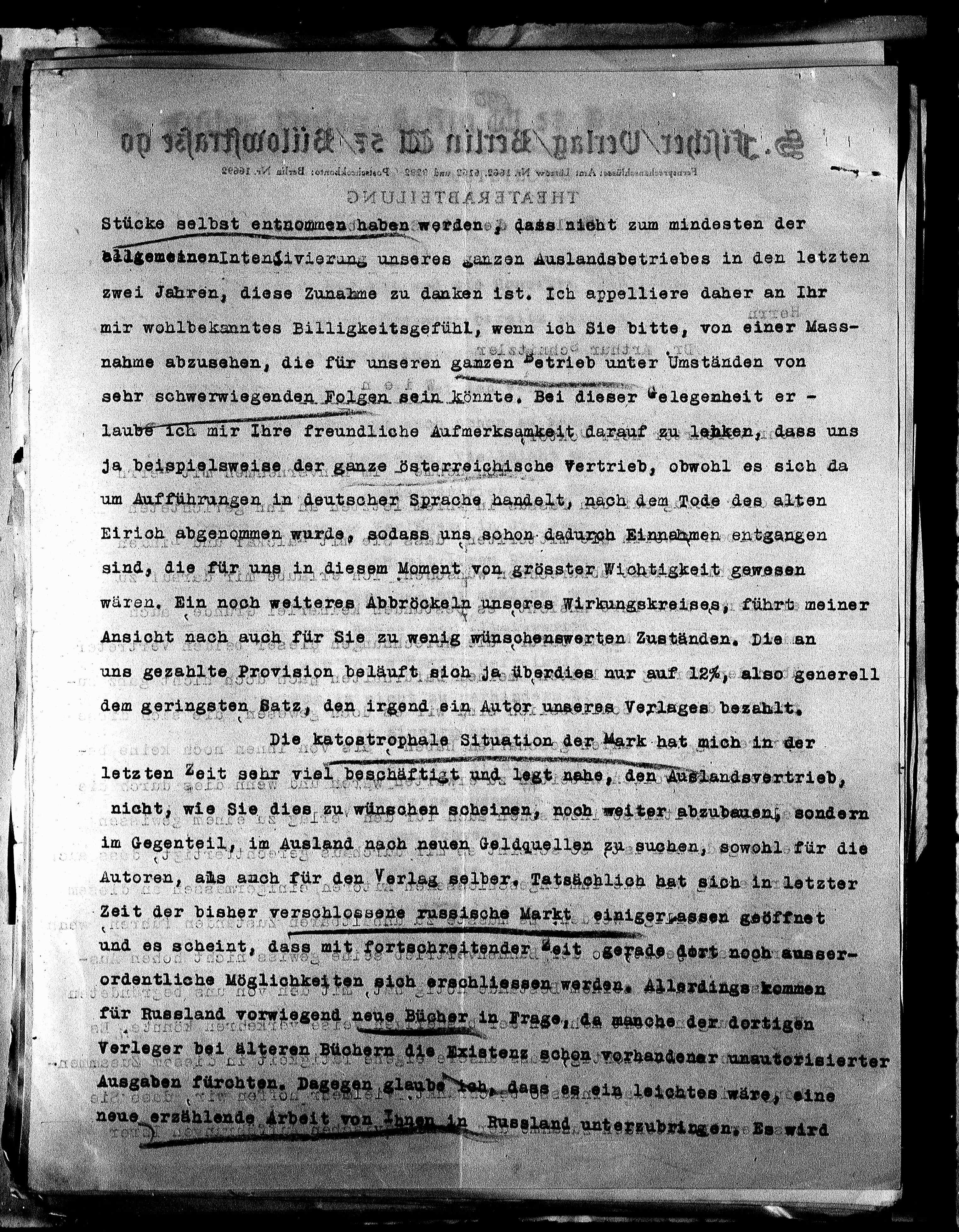 dem geringsten Satz, den irgend ein Autor unseres Verlages bezahlt.